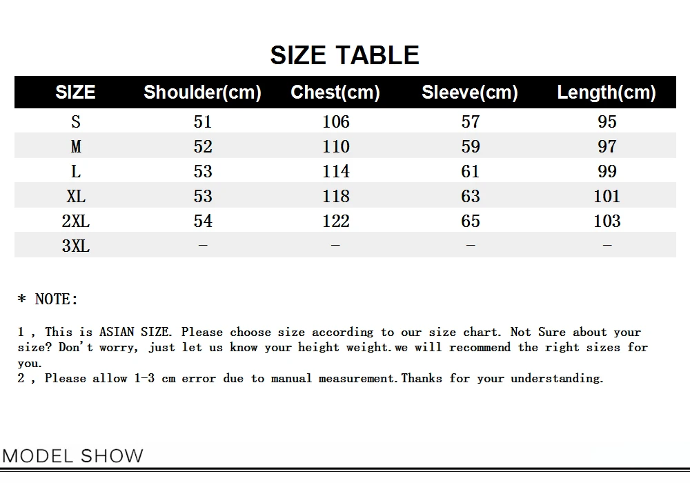 Fit tips: Many items use Asian measurements and can run 1–2 sizes smaller than US/EU. If between sizes, consider sizing up. Allow 2–3 cm variance from manual measurement. For shoes, measure your foot length (heel-to-toe) and use cm first.