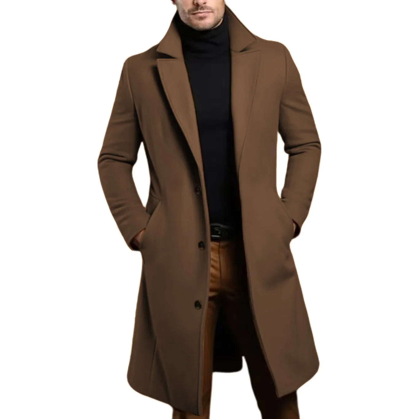 Step into style with our Elegant Men's Trench Coat, designed for both versatility and distinction. Crafted to keep you warm and stylish, this trench coat features a classic stand collar with modern buckle accents and a double placket to shield against the elements. Perfect for daily wear or formal occasions, this coat seamlessly blends comfort with elegance.