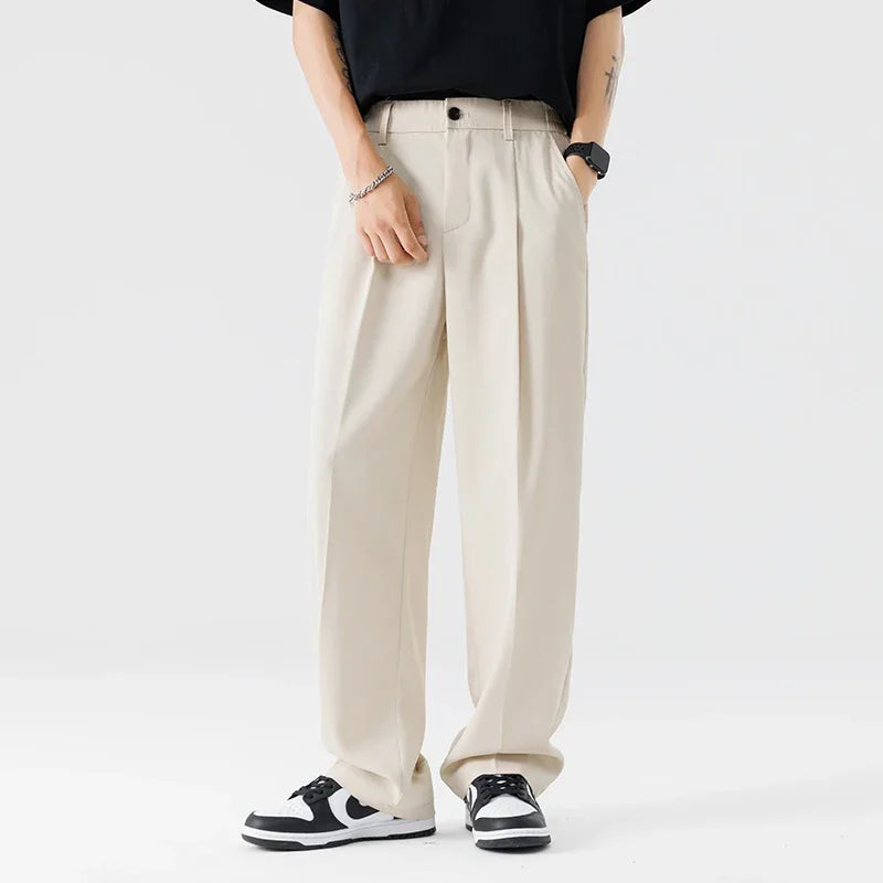 Experience unmatched comfort and style with our Casual Wide Leg Business Trousers, perfect for modern men who appreciate a blend of smart and streetwear influences. These trousers offer a relaxed fit through the hips and thighs, tapering slightly towards the ankles, ensuring both comfort and a polished look. Crafted from premium polyester, these pants are designed to maintain their integrity and style throughout all seasons.
