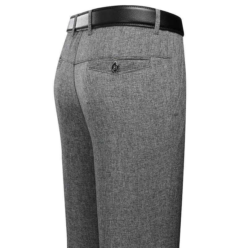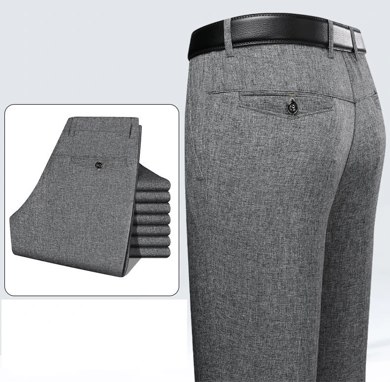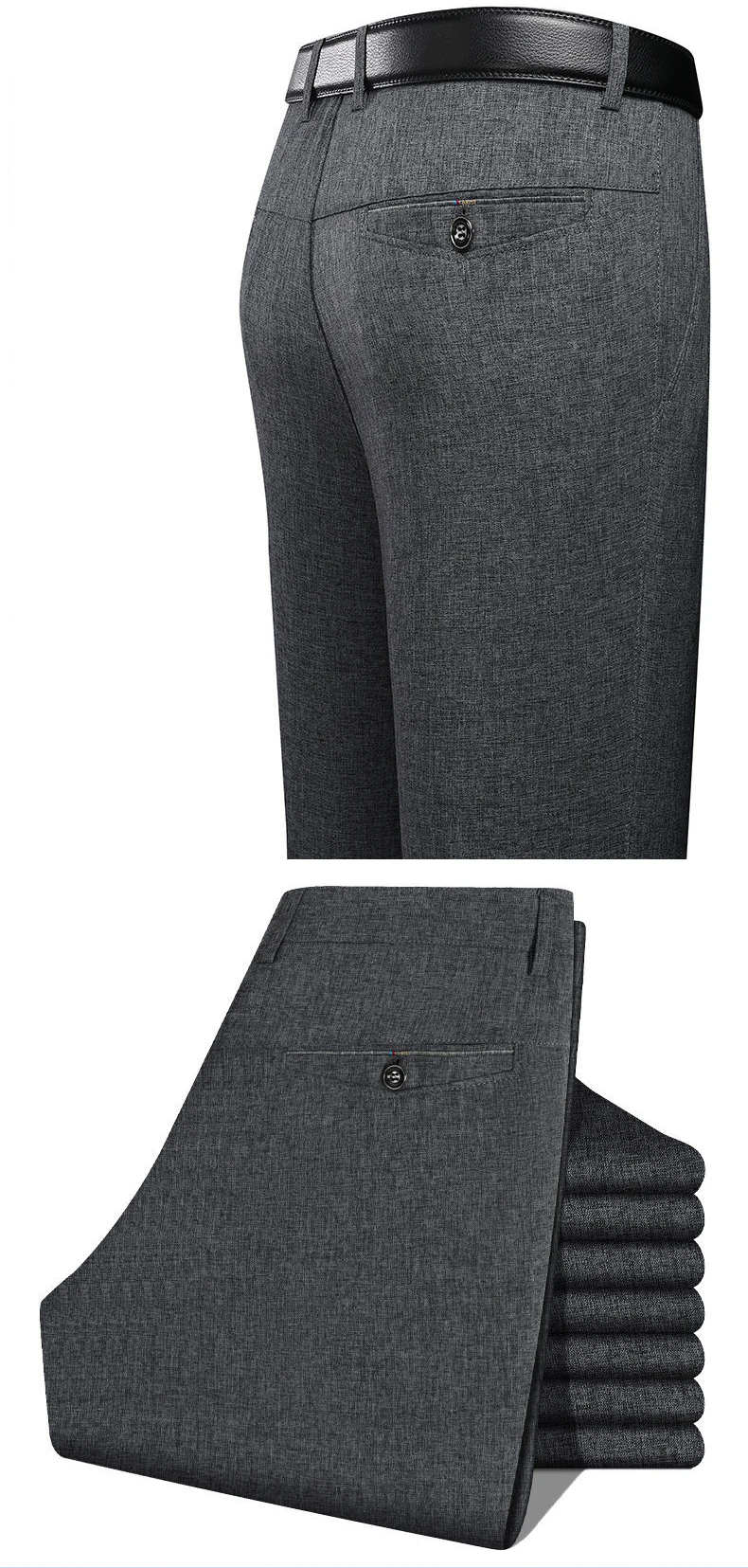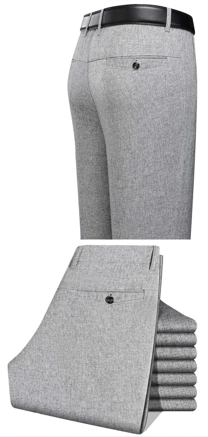 Featuring a sleek, straight-leg design, our dress pants come in versatile black and grey, making them the ideal complement to any business attire. The elastic waist and durable zipper fly ensure a perfect fit and ease of movement, so you can transition seamlessly from business meetings to casual after-hours engagements.