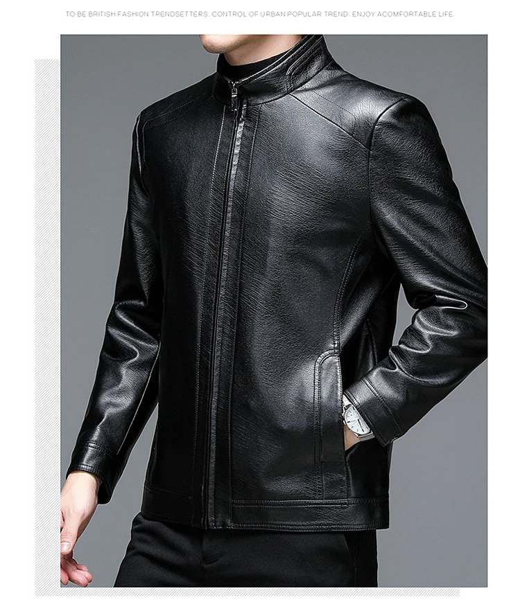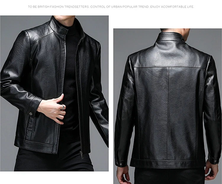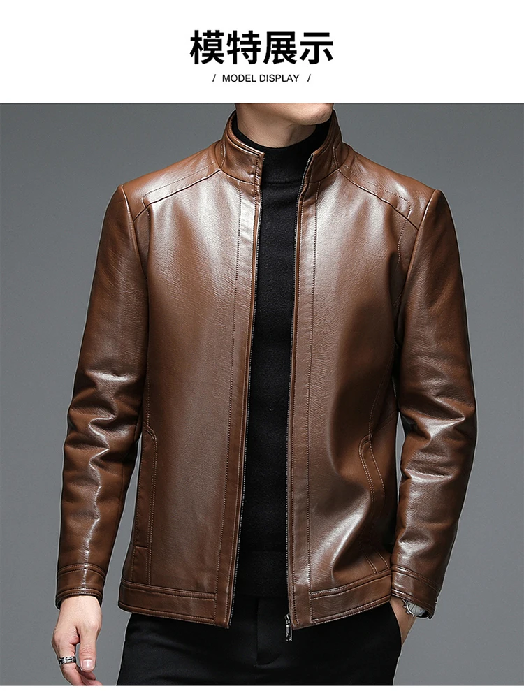 Embrace timeless style and sophistication with our Classic Goatskin Leather Jacket, tailored for the modern man. This lightweight jacket is perfect for both spring and autumn, providing an upscale look without the bulk. Featuring a sleek, minimalist design with a stand collar and functional side seam pockets, this jacket is your ideal companion for both casual and business settings. Crafted from high-quality split leather, it offers durability and a soft feel, ensuring it becomes a staple in your wardrobe for years to come.