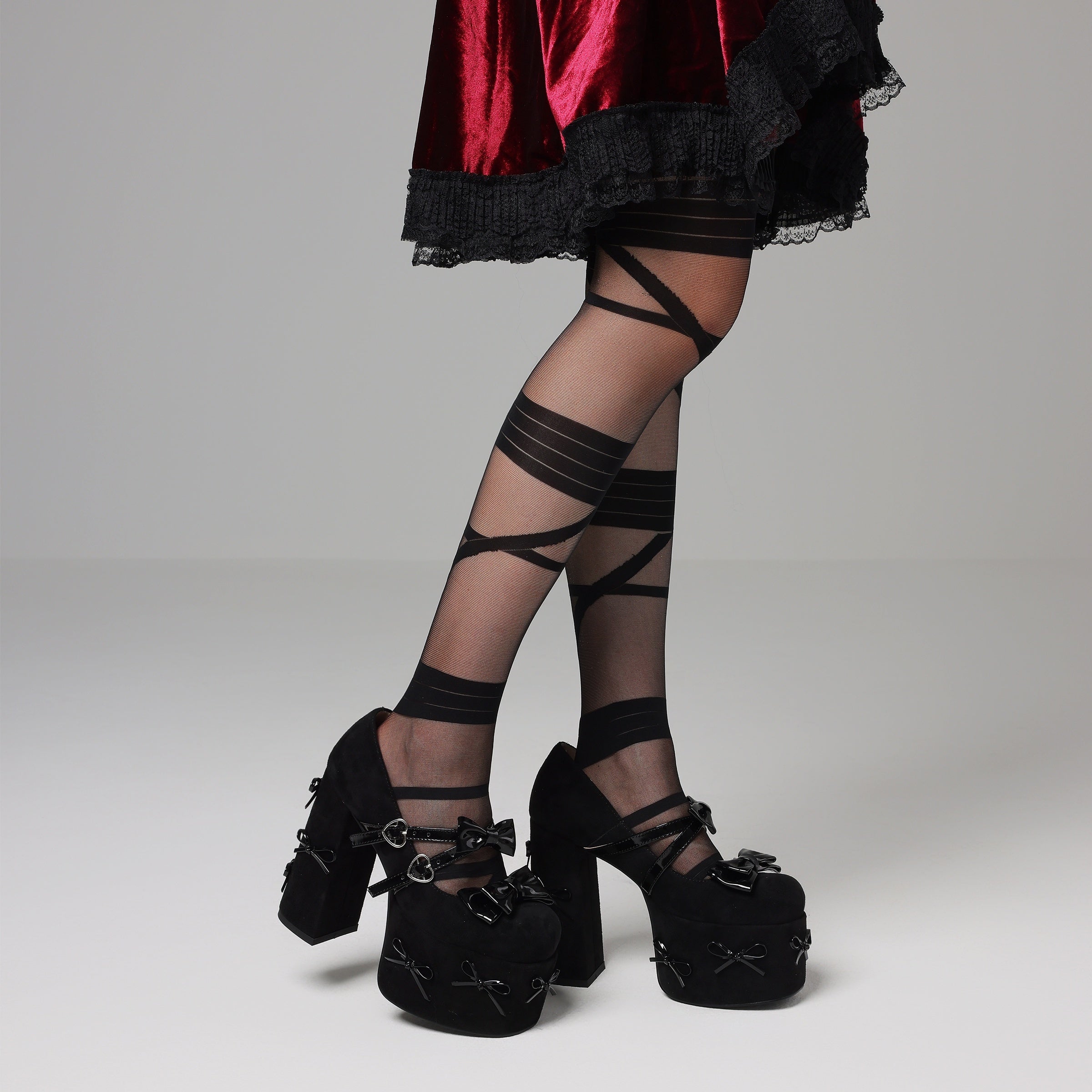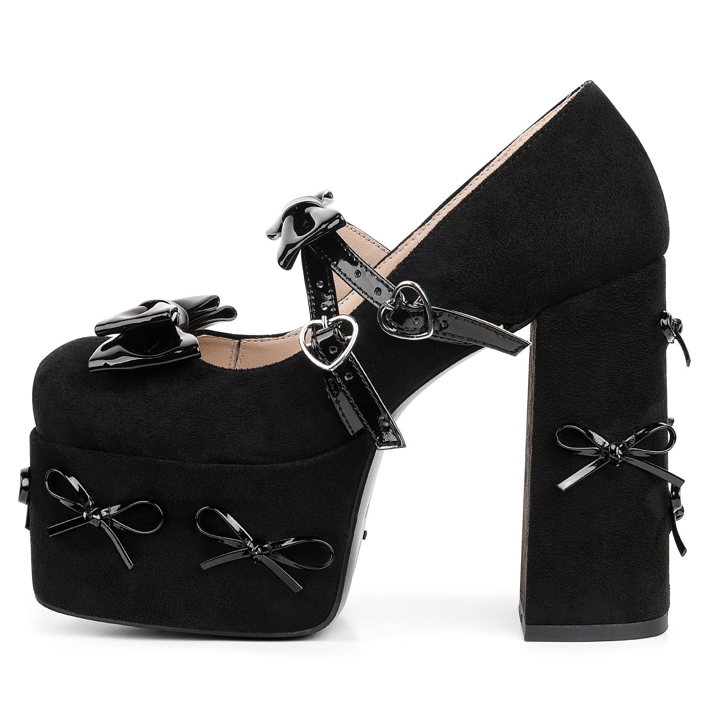 Chic Bow Cross Buckle Platform Pumps - Y2K Black High Heels