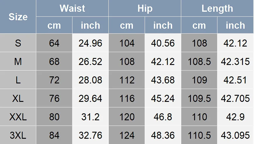 | 3XL | 122–128 | 48–50.5 | 108–115 | 42.5–45.5 | Extended |