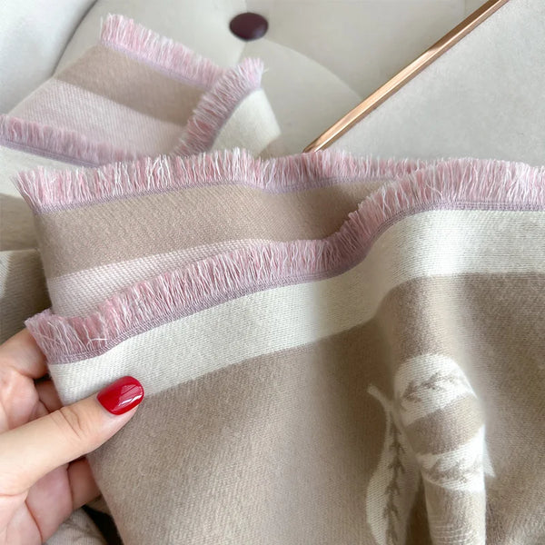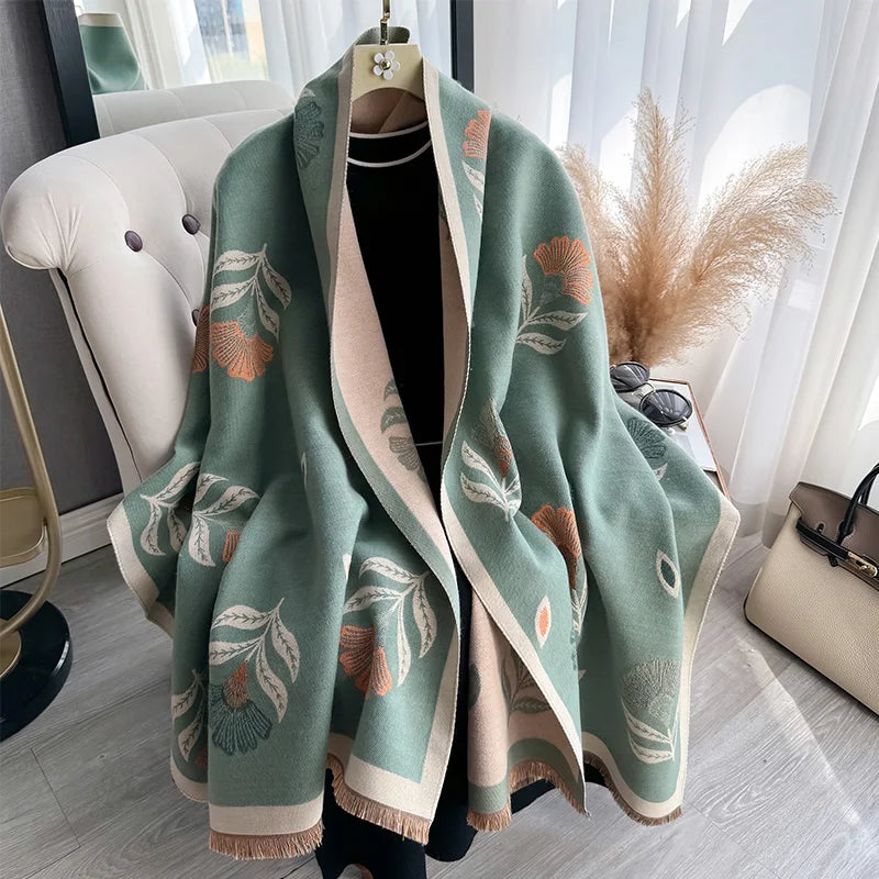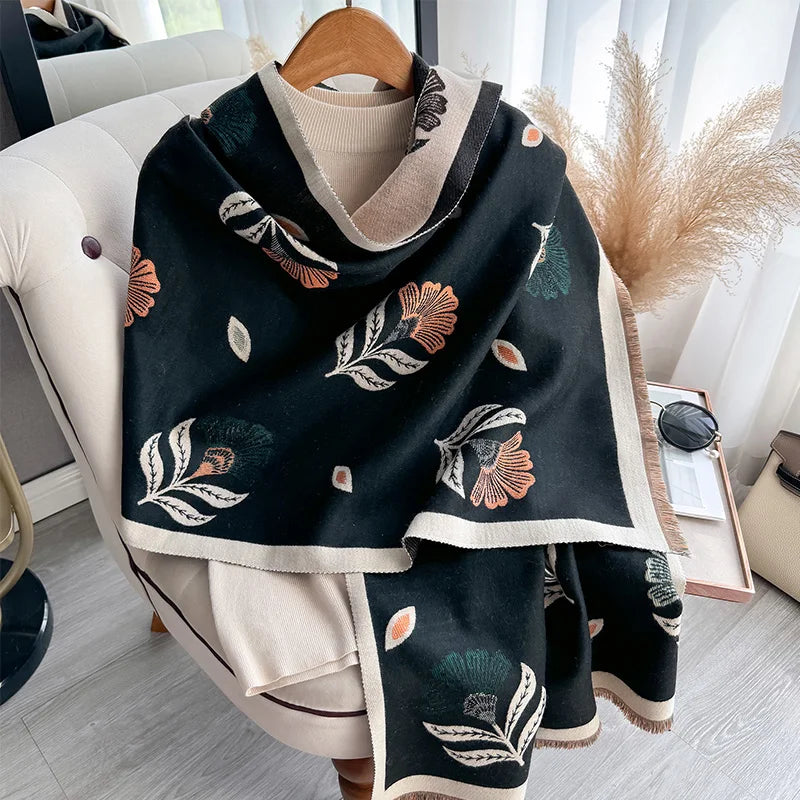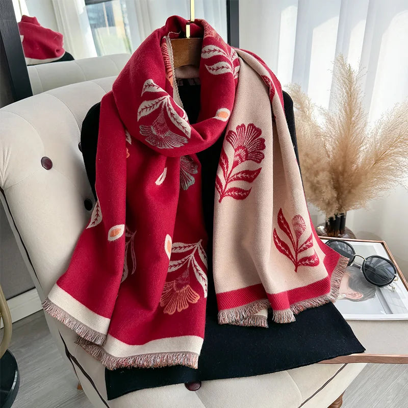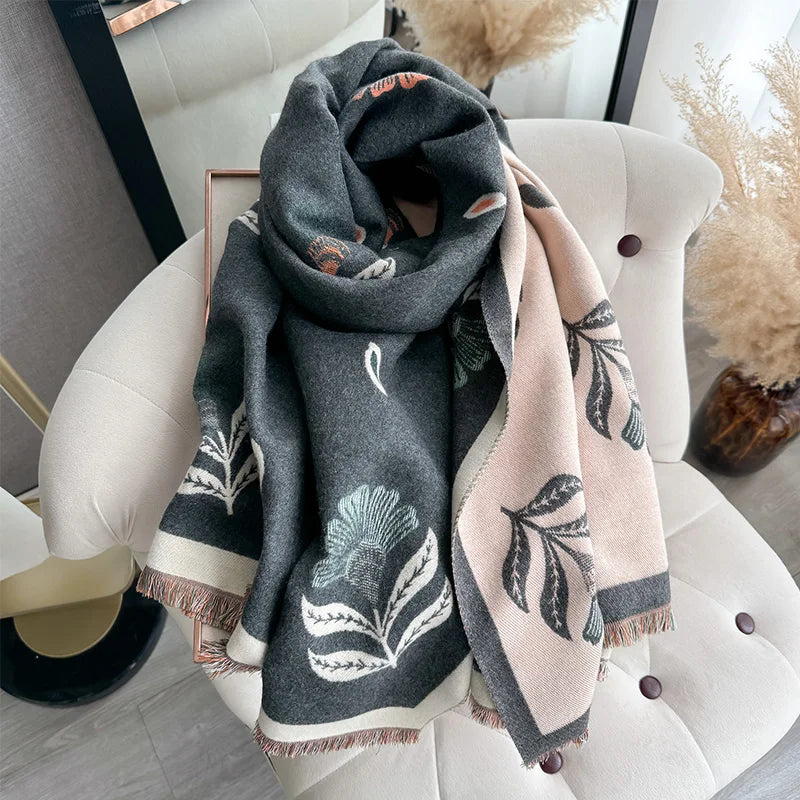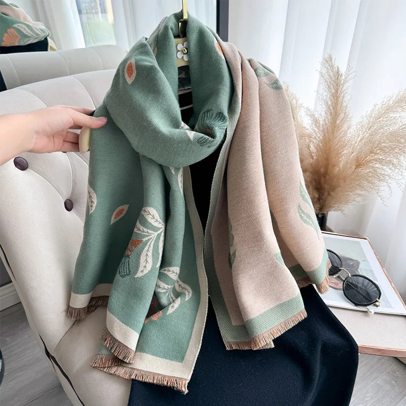 Luxury Autumn & Winter Leaf-Print Shawl Scarf for Women