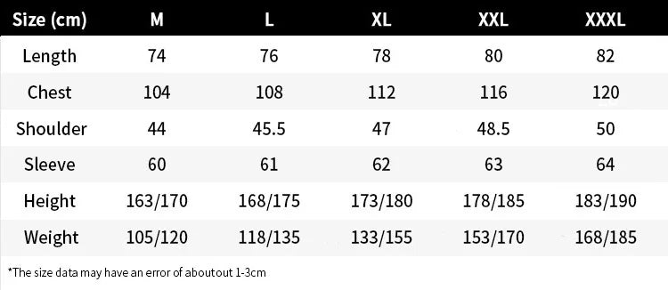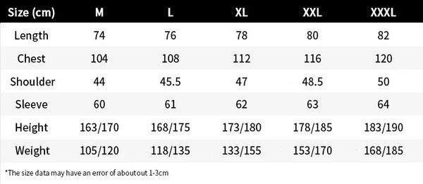 | 3XL | 122–128 | 48–50.5 | 108–115 | 42.5–45.5 | Extended |