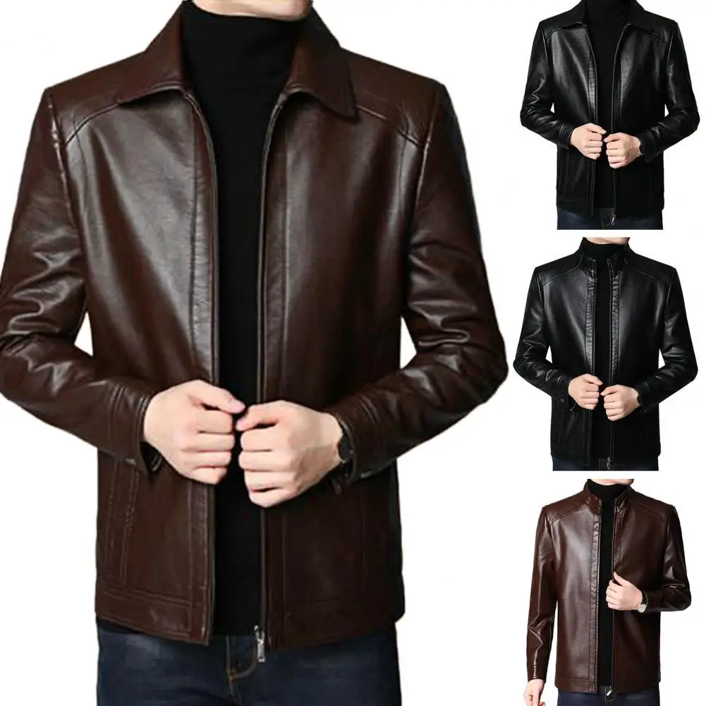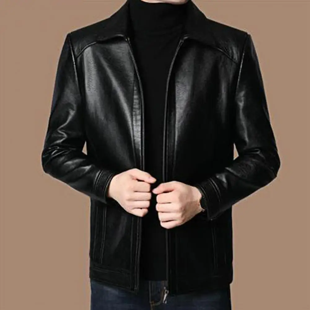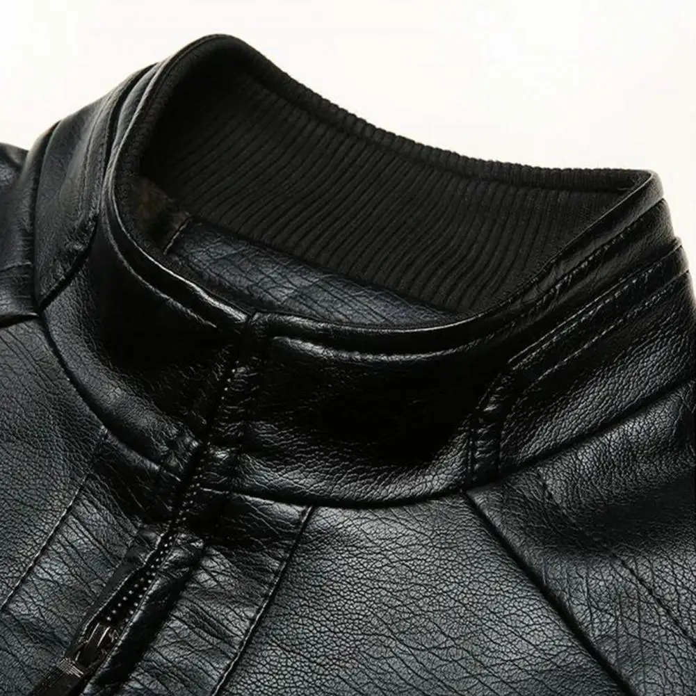 Elevate your style with our Men's Faux Leather Jacket! Tailored for the modern man, this jacket merges classic appeal with contemporary fashion. Its high-quality faux leather is both durable and sleek, making it a staple for any wardrobe. The stand collar and secure zip closure enhance both functionality and style, ideal for chilly autumn and winter days. Versatile enough for casual outings, professional settings, or adventurous excursions, this faux leather jacket ensures you stay warm while looking effortlessly cool.