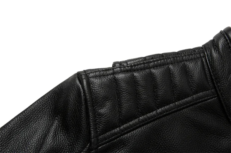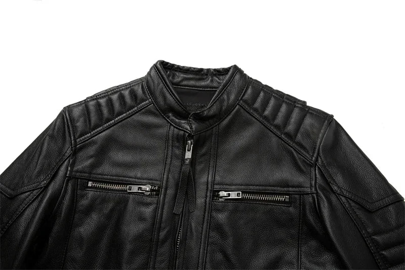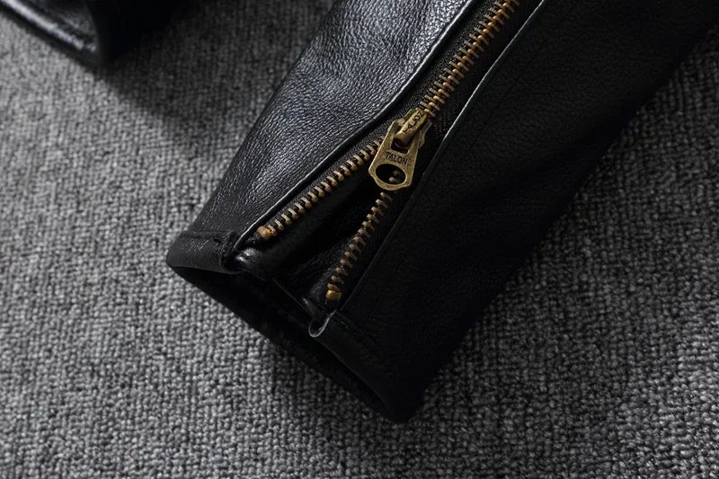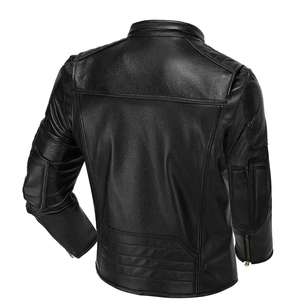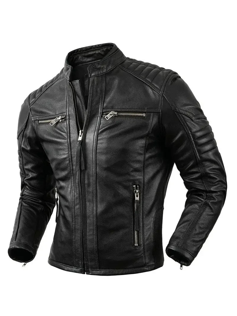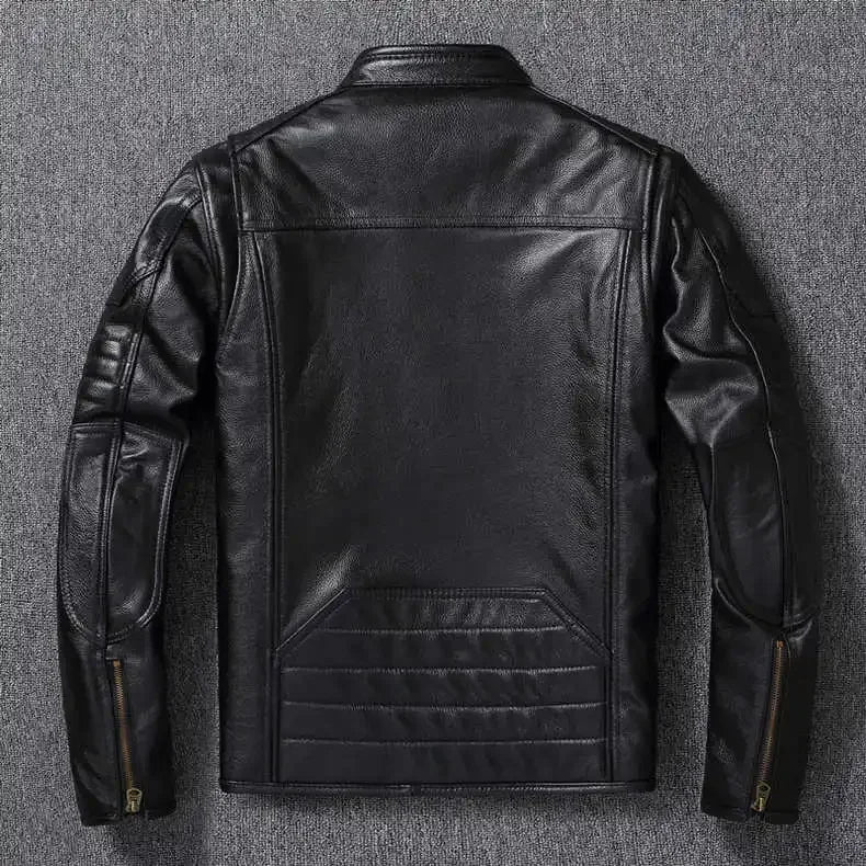 Experience timeless style and superior craftsmanship with our Premium Men's Leather Biker Jacket. Crafted from first-layer calfskin leather, this jacket offers not only exceptional durability but also a sleek, retro aesthetic that complements any outfit. The stand collar design adds a modern twist to the classic biker look, making it perfect for both casual rides and everyday wear. Embrace the blend of luxury and ruggedness with this essential wardrobe piece.