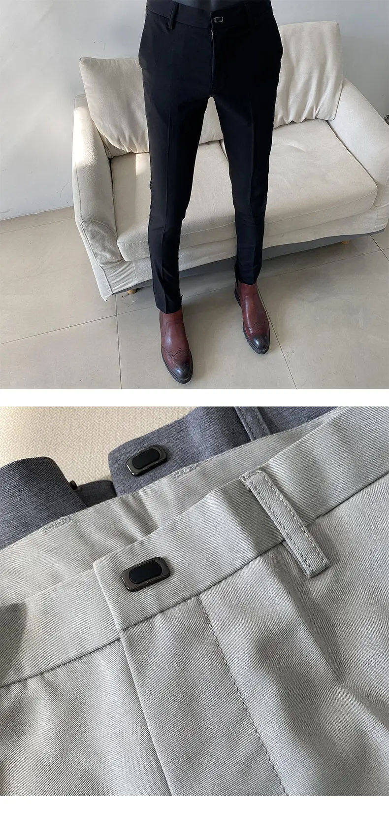 Upgrade your wardrobe with our elegantly tailored Slim Fit Business Dress Pants, perfect for autumn office wear or social events. Crafted from a premium blend of polyester and spandex, these trousers offer both comfort and style. The flat-front design and smart-casual look ensure that you stay sharp and sophisticated throughout your day. With a convenient zipper fly and a selection of neutral colors, these pants are a versatile addition to any modern professional's closet.