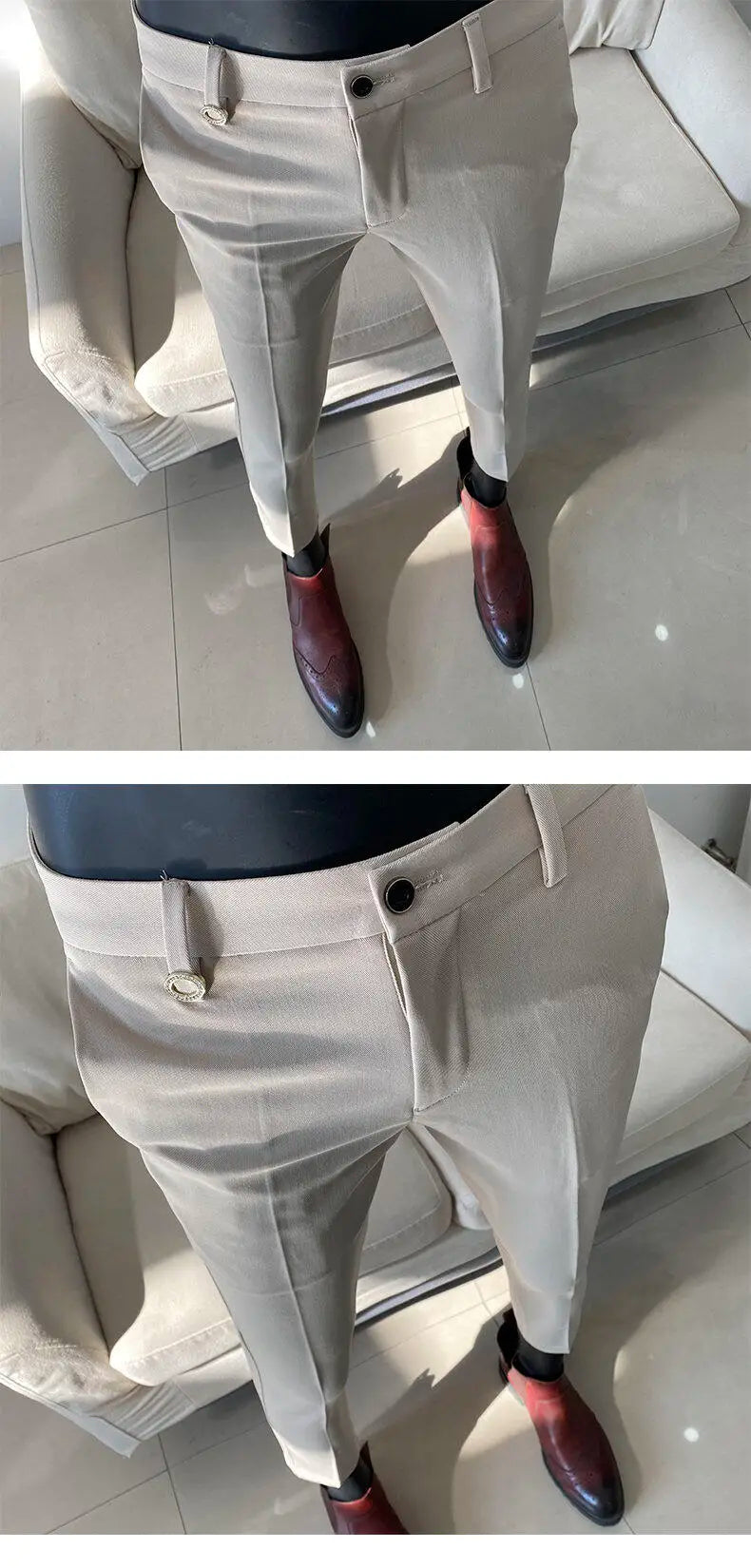 Featuring an elastic waist for an optimal fit, these ankle-length trousers are designed to complement your physique while providing ease of movement. Whether you're at the office or attending a business function, our dress pants are the ideal choice for looking your best.