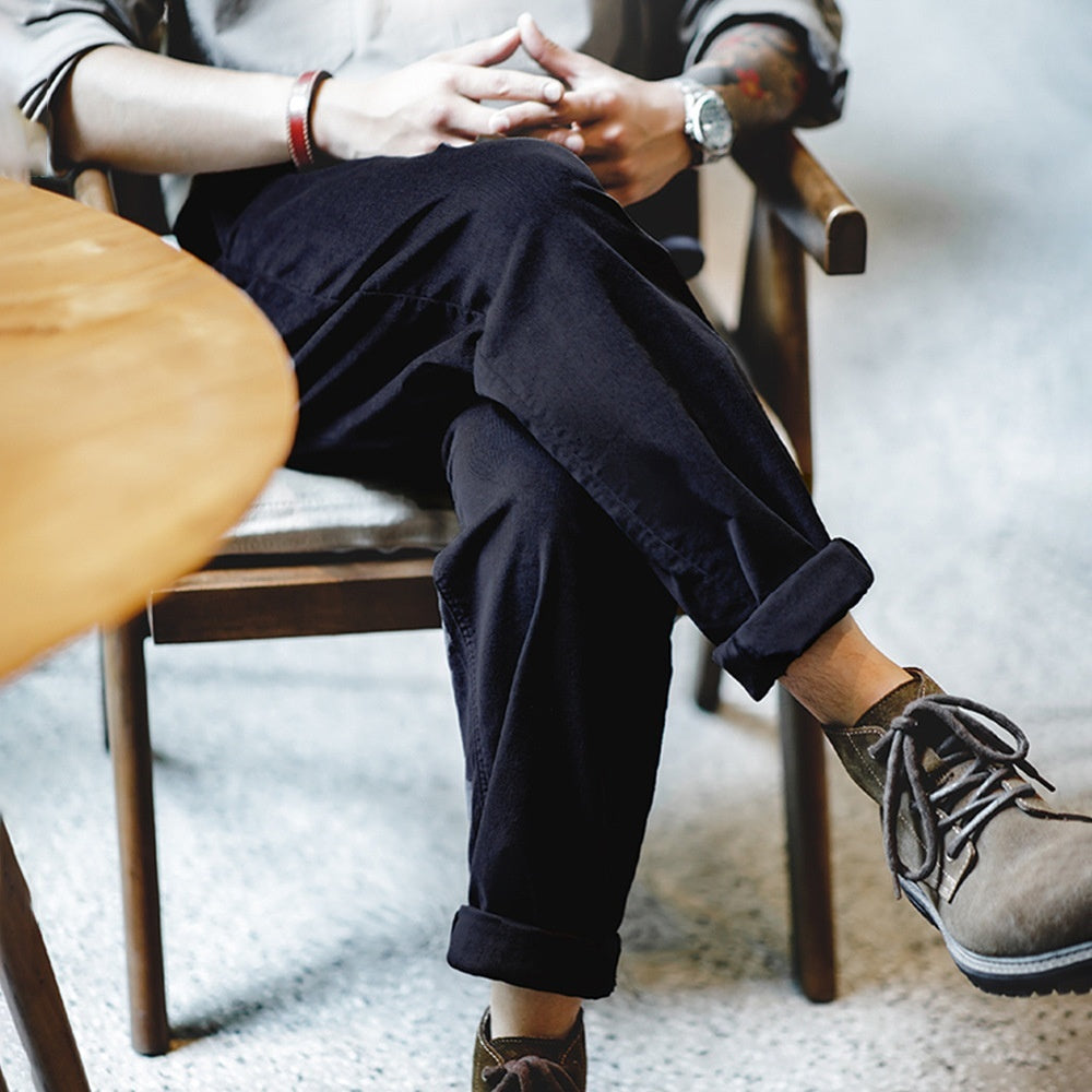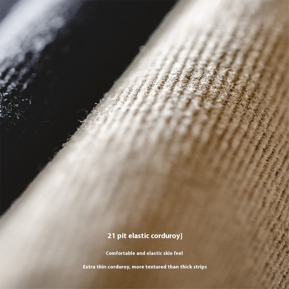 Men's Corduroy Pants in Navy Blue and Khaki - American Casual Style, Cotton Fabric, Mid-Waist, Full-Length Trousers, Slight Stretch