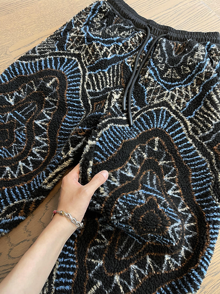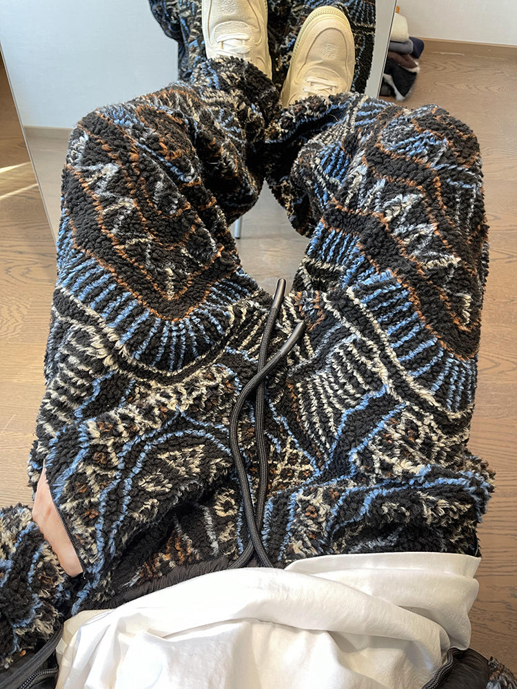 Men's Seaside Casual Loose Beach Pants with Flower Print - Black. Warm fleece-lined polyester for stylish comfort.