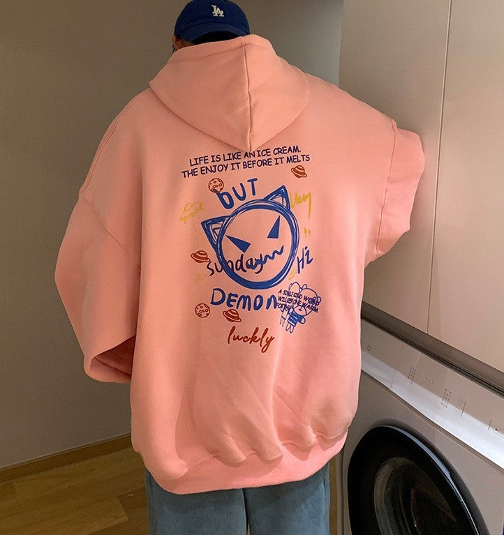 Men's Hooded Sweater - Padded Velvet Comfy Loose Pullover Coat