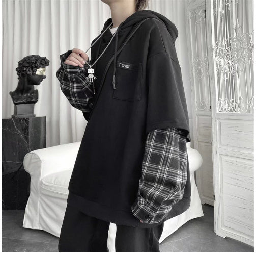 Trendy Plus-Size Two-In-One Look Hooded Sweater for Youth - Korean Fashion Loose Fit Top with Hood for Urban Wear - Unisex - M to 5XL