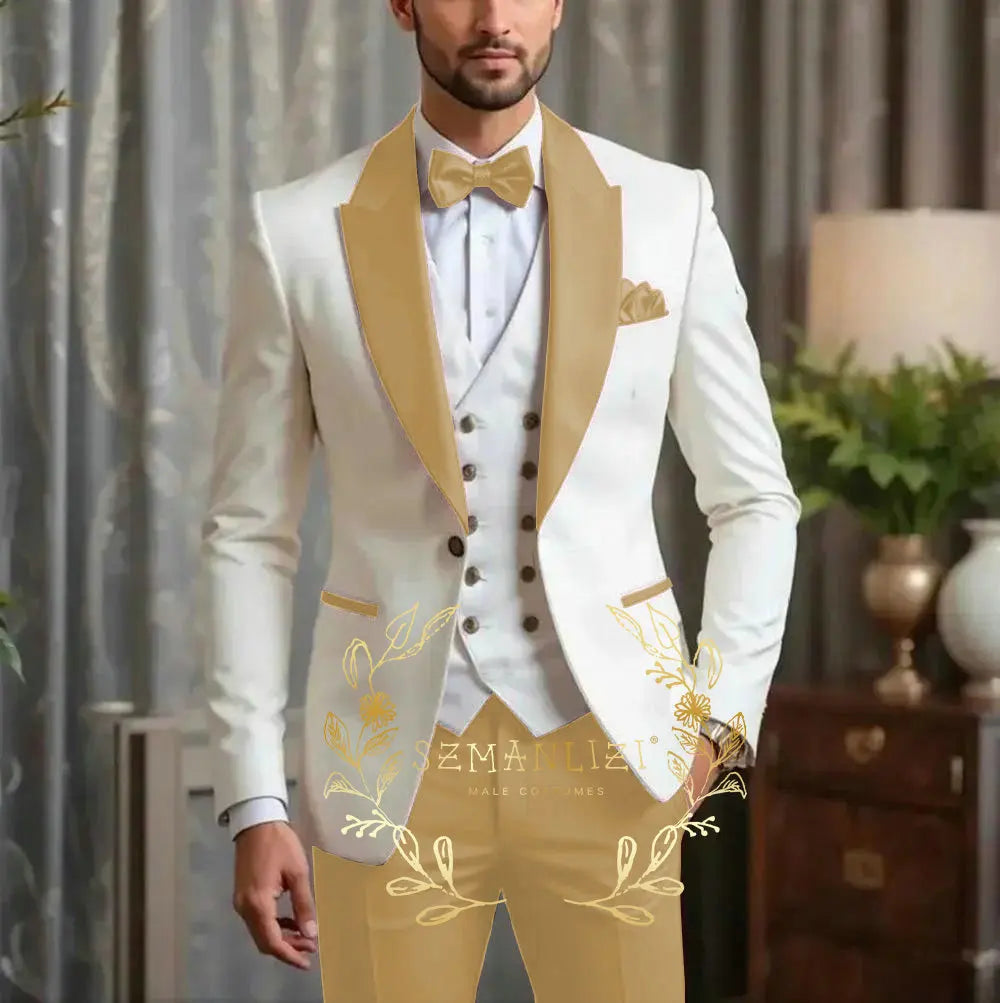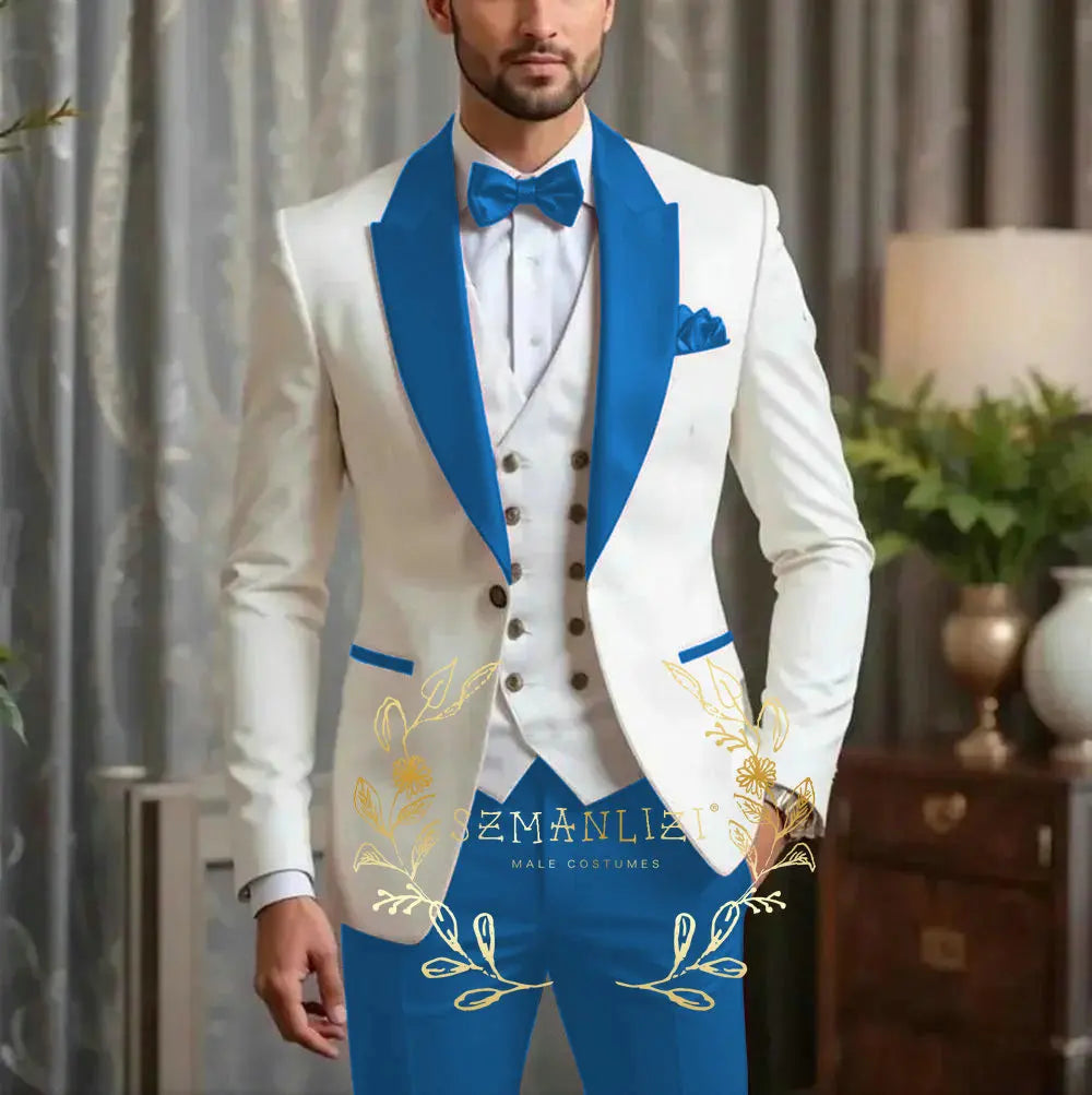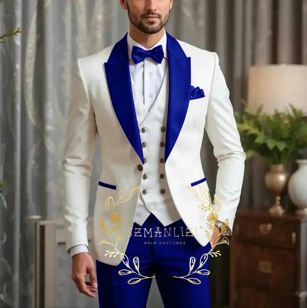 Step into elegance with our Luxury Men's Wedding Suit Set, designed to make your special day unforgettable. Crafted with precision and care, this suit set features a stunning ivory blazer paired with a vibrant burgundy vest and pants, ensuring you look impeccably sharp. Perfect for weddings, banquets, and formal events, this outfit combines classic style with modern sophistication.