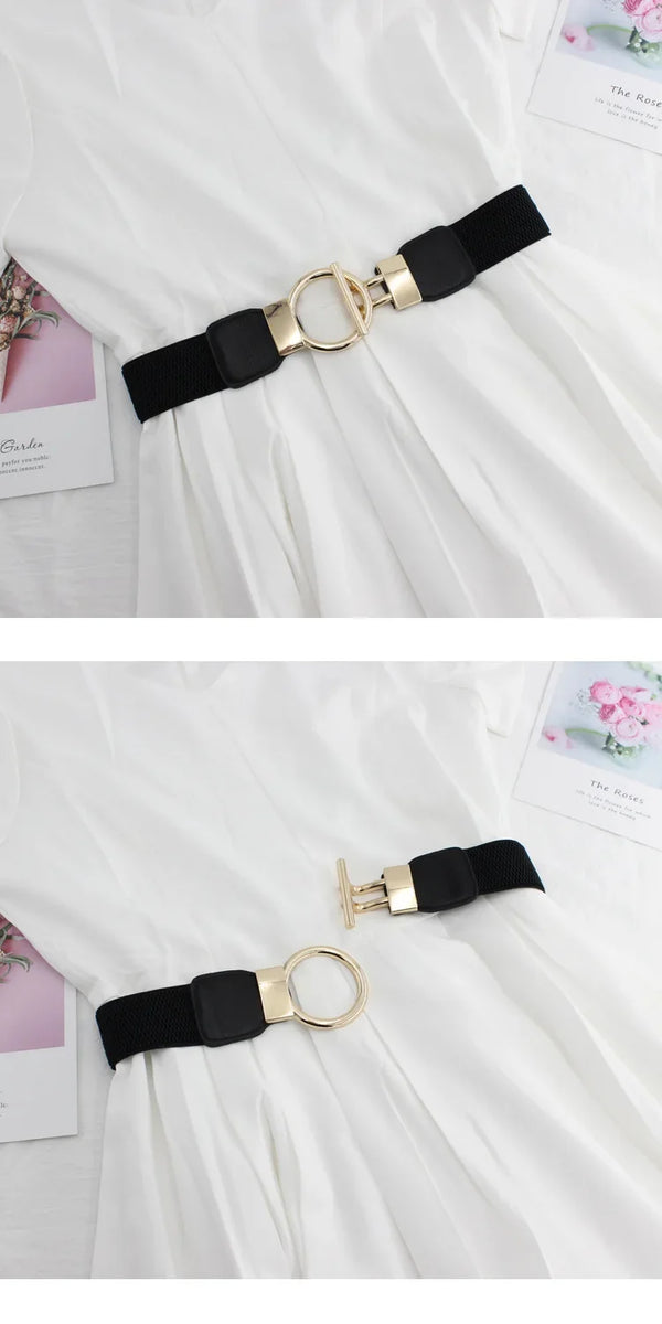 Chic Elastic Waist Belt with Round Metal Buckle for Women