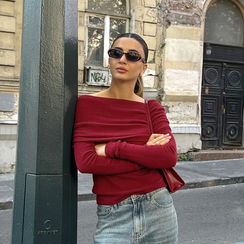 Sleek Burgundy Knitted Long-Sleeve Top
