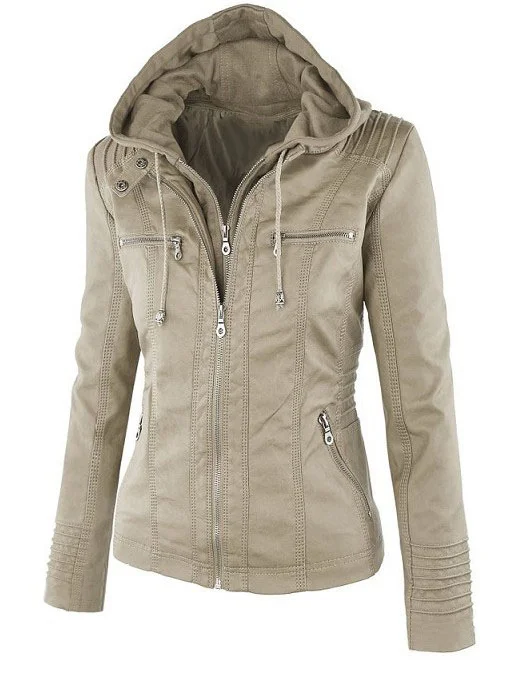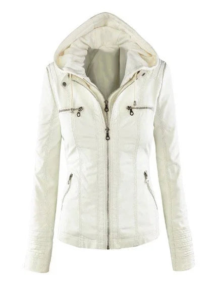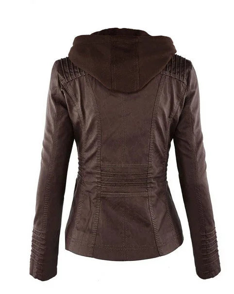 Chic Hooded Faux Leather Jacket for Women