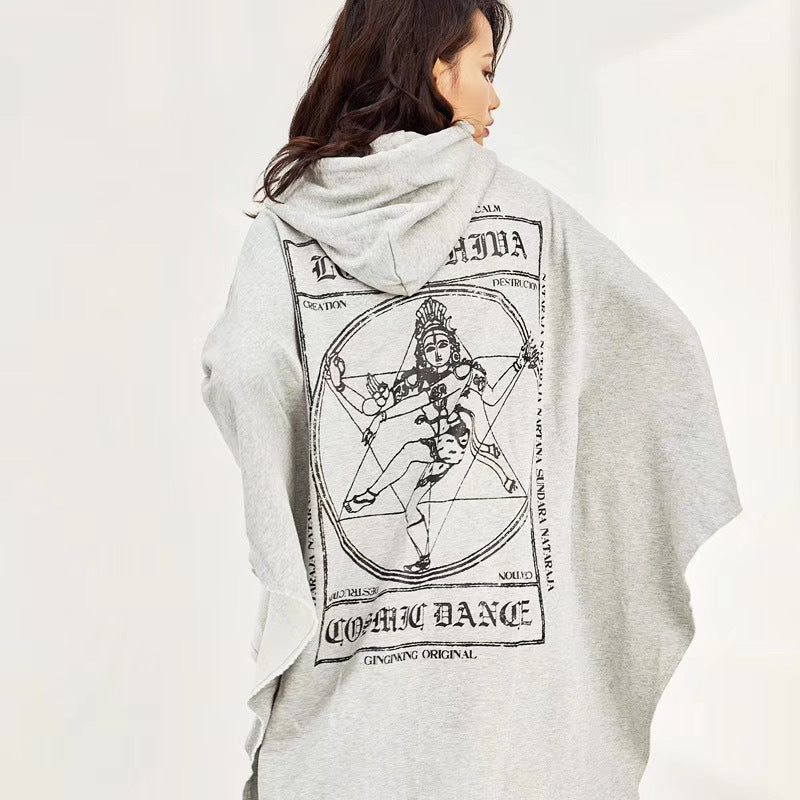 Discover the grace of the “Elegant Shiva Lady Print Cape Poncho” - a blend of comfort, style, and durability. Made from 100% premium cotton and adorning the depiction of Lady Shiva, it adds a touch of elegance to your routine. Its light grey color palette offers versatility and a loose fit ensures relaxed clothing experience regardless of your size.