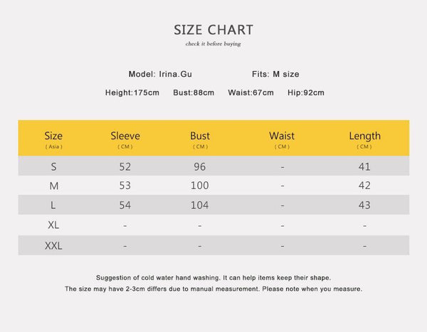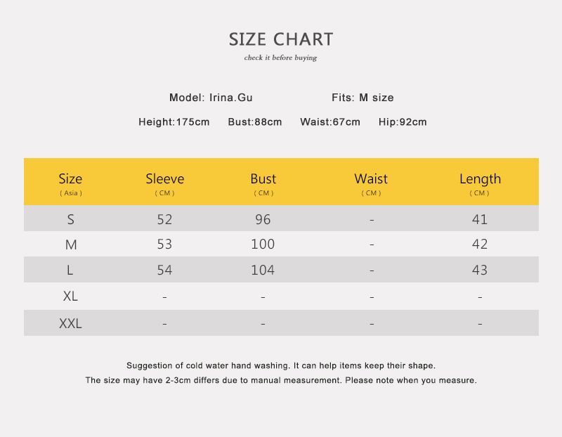 • Expect 2-3cm differences in sizing due to manual measurement.