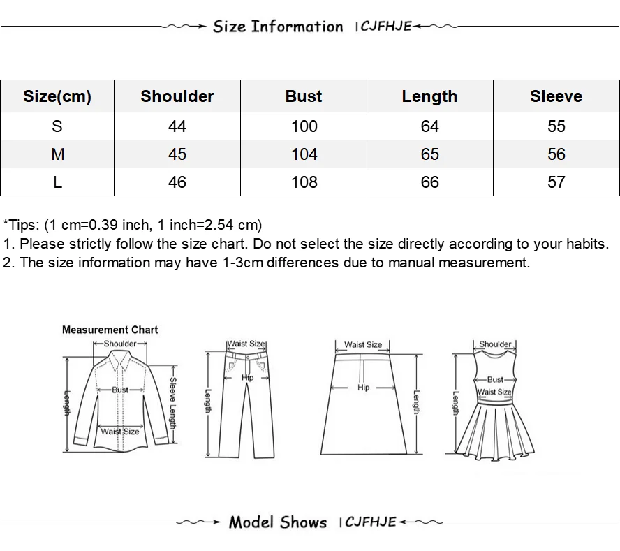 Fit tips: Many items use Asian measurements and can run 1–2 sizes smaller than US/EU. If between sizes, consider sizing up. Allow 2–3 cm variance from manual measurement. For shoes, measure your foot length (heel-to-toe) and use cm first.