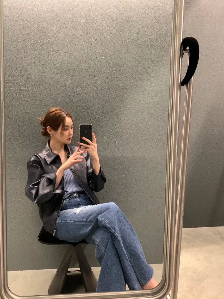 Chic Cropped Leather Jacket for Women