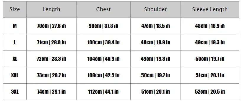 | Label | US/EU approx | Chest (cm) | Shoulder (cm) |
