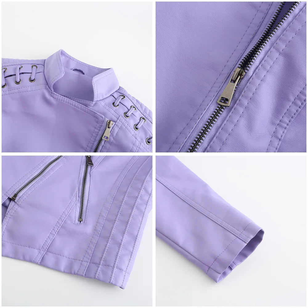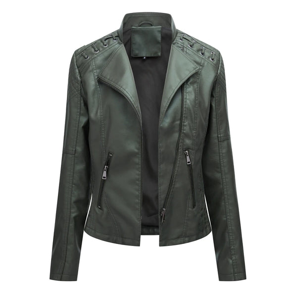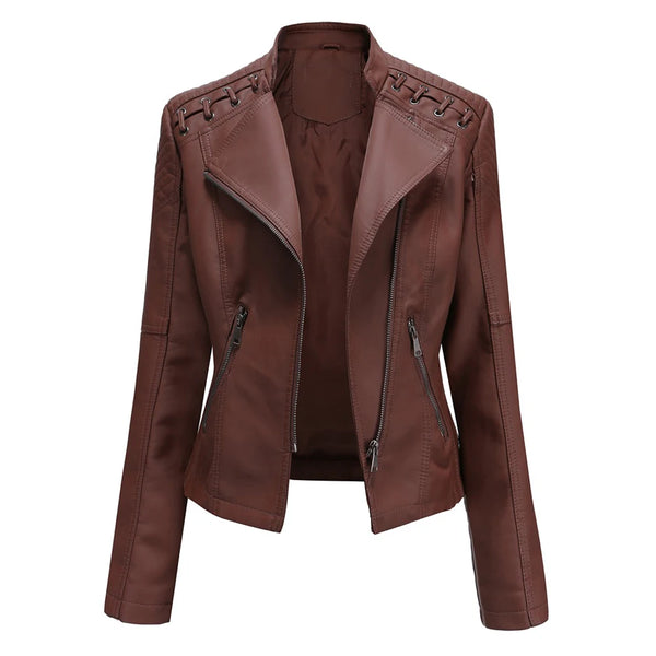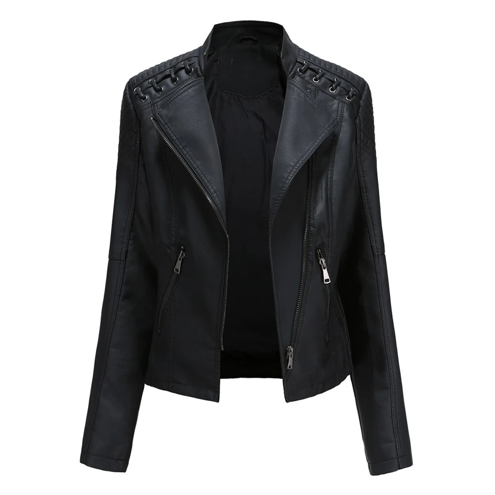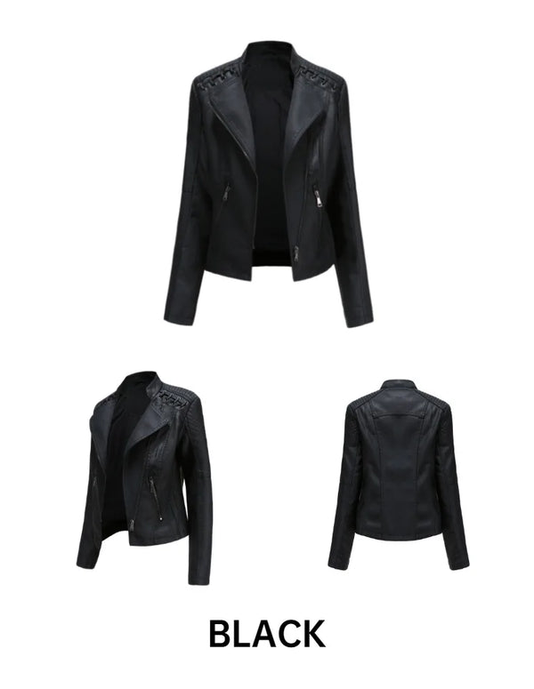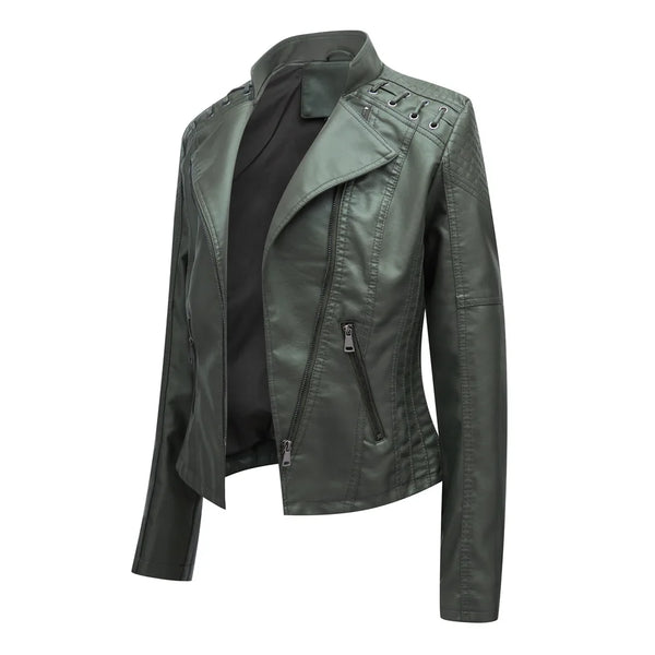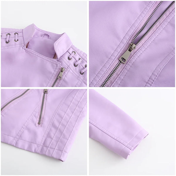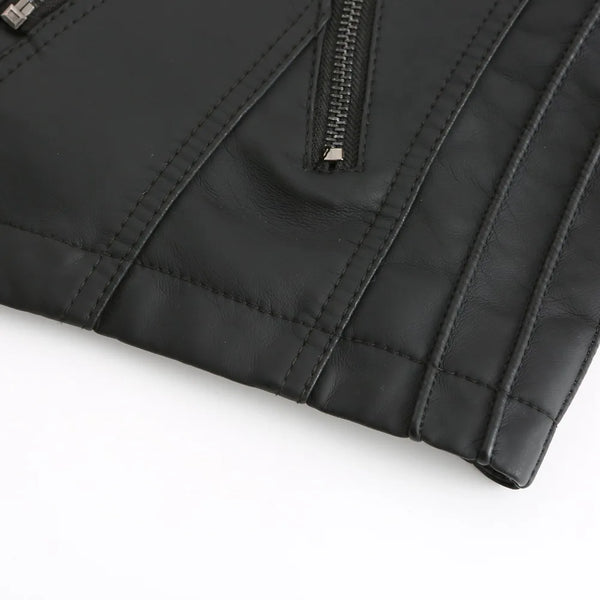 Women's Slim Fit PU Leather Motorcycle Jacket