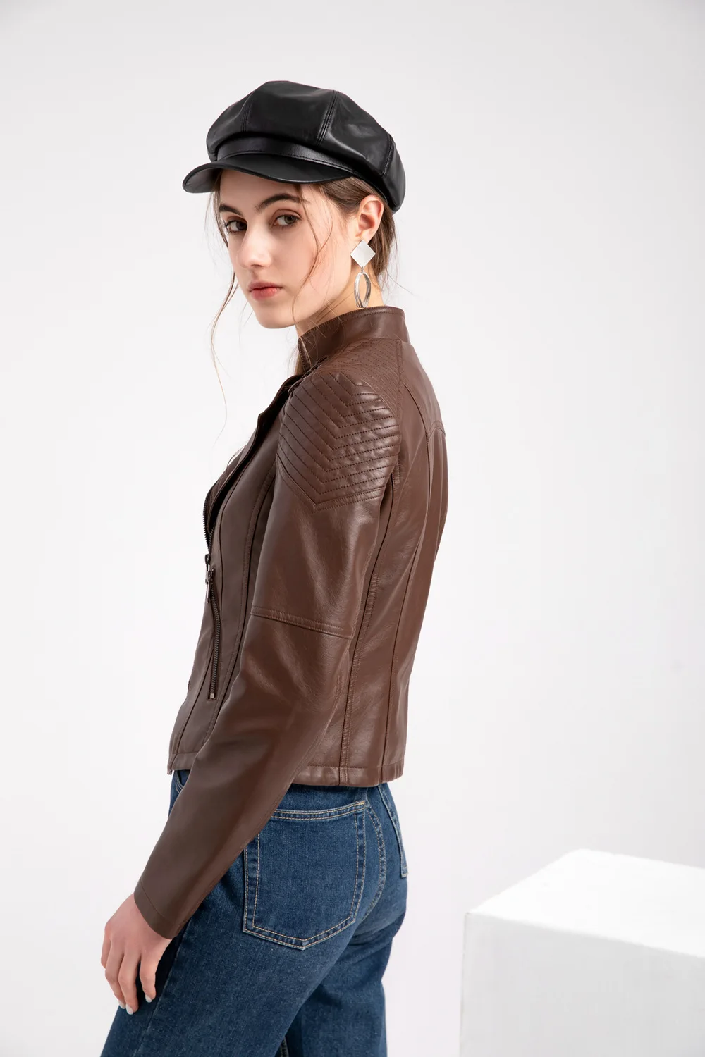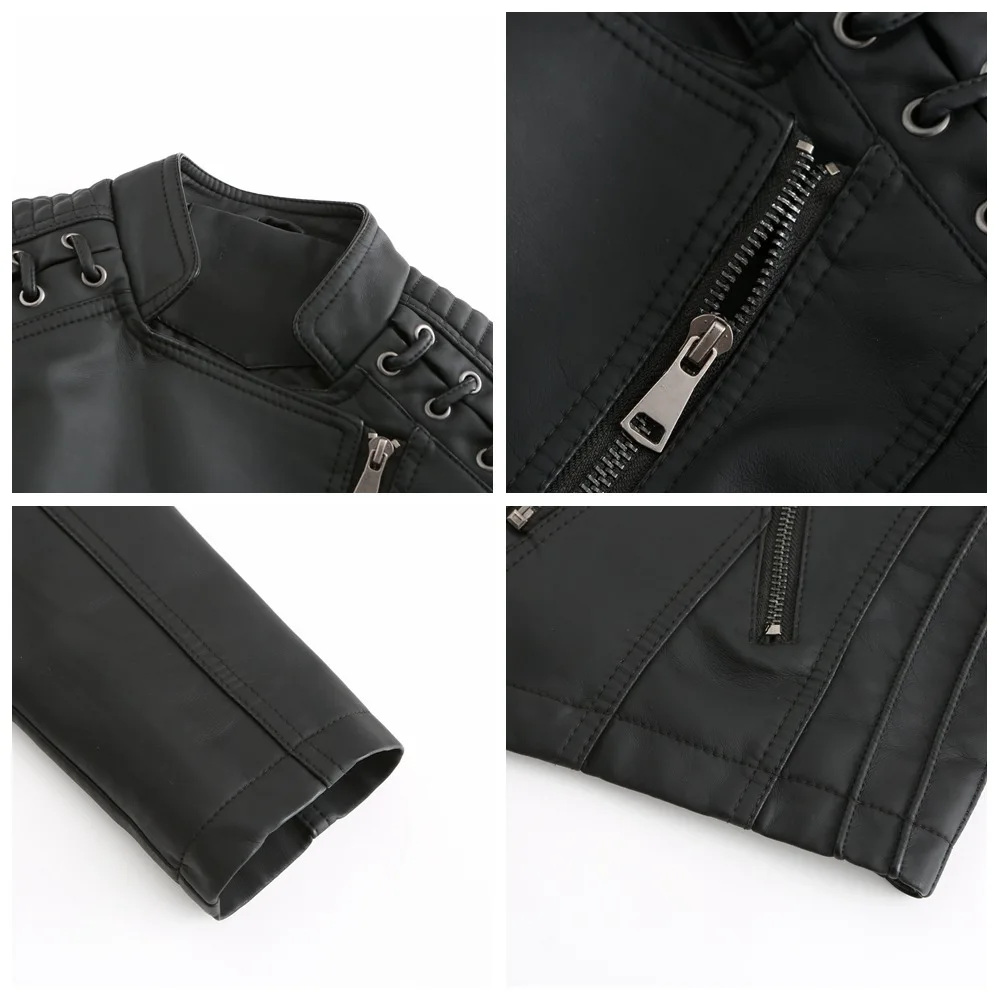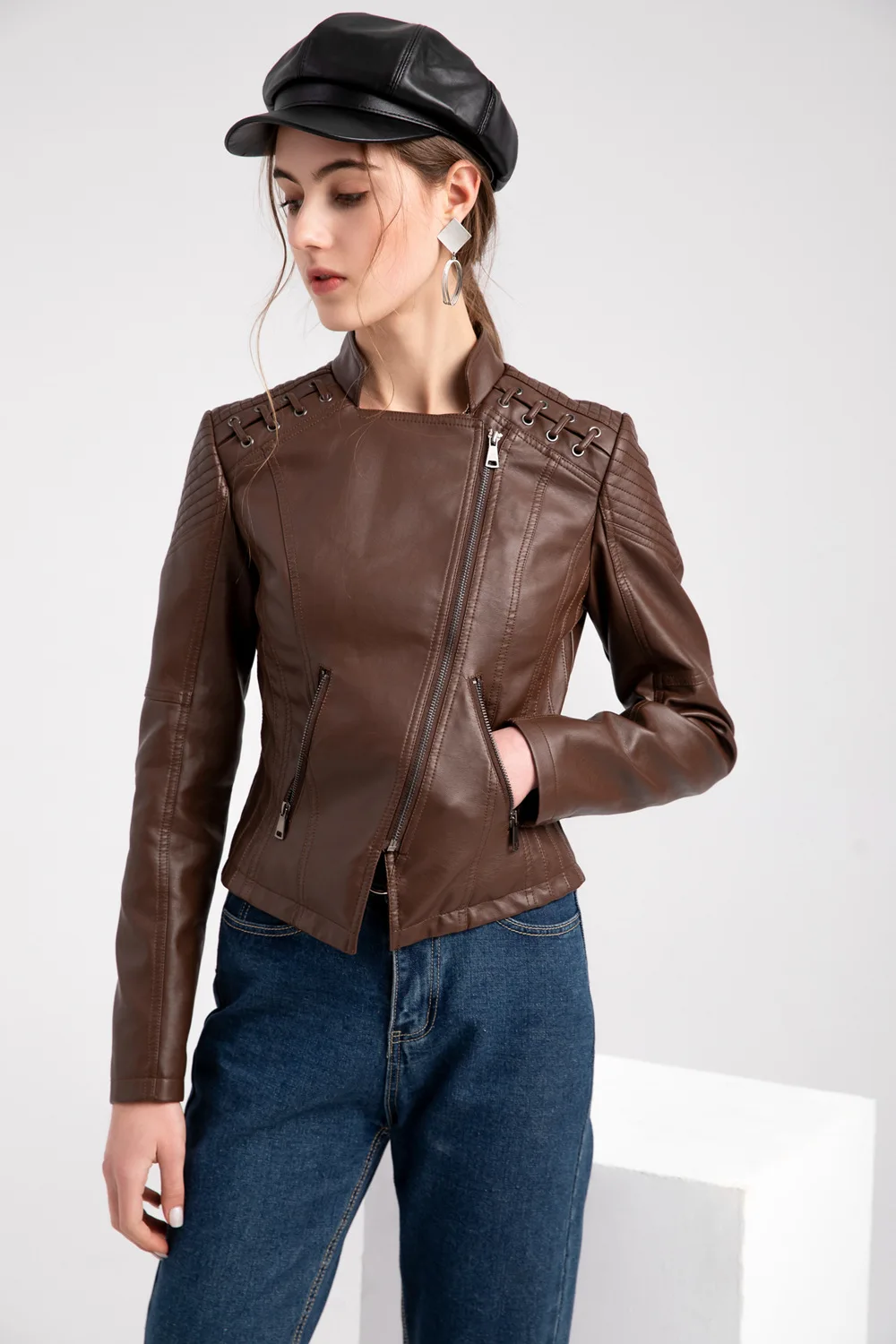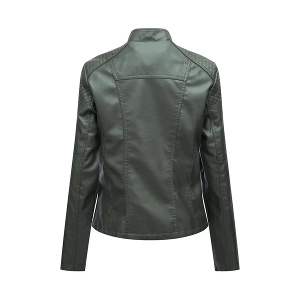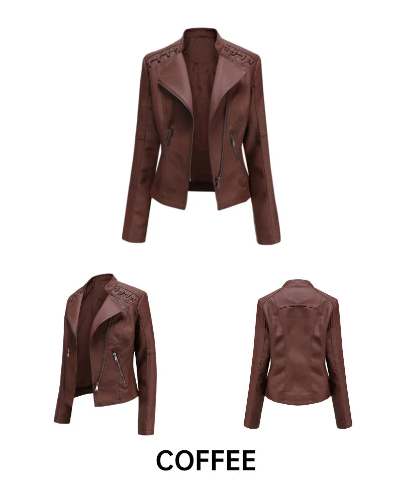 Women's Slim Fit PU Leather Motorcycle Jacket