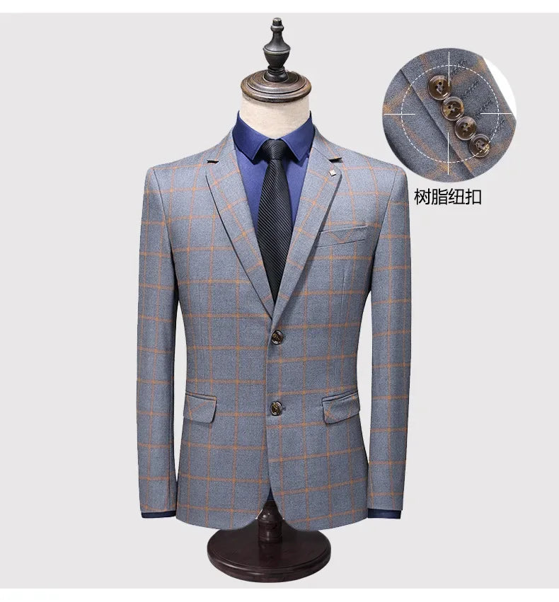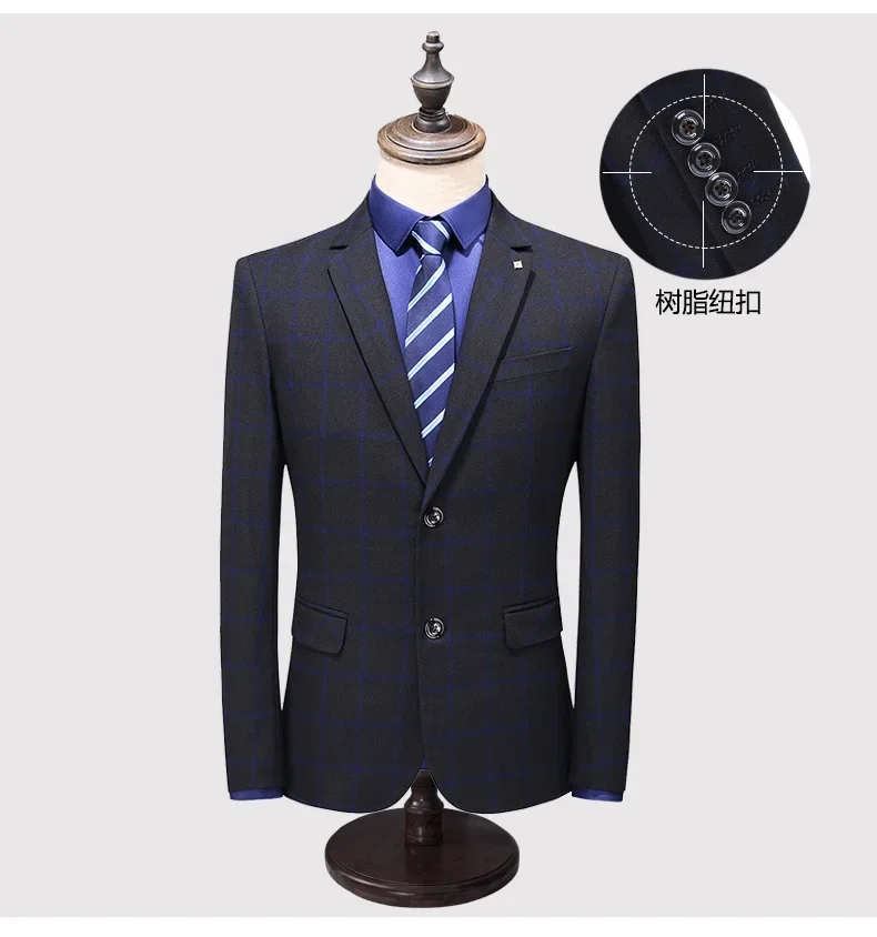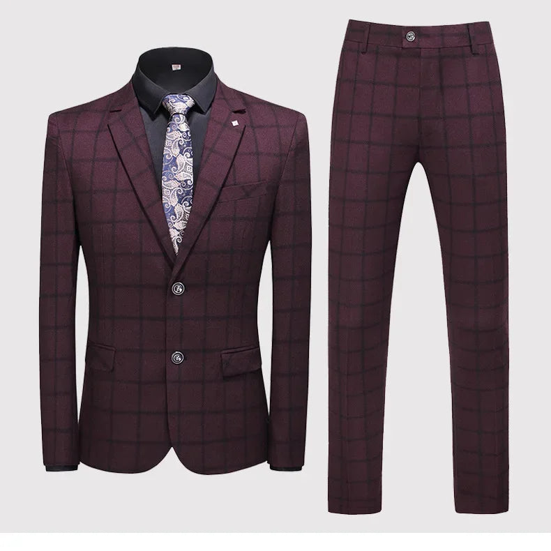 Crafted to transition seamlessly from decisive meetings to festive toasts, the suit’s British grid pattern isn't just a design; it's a statement of meticulous style and an ode to classic tailoring. The blend of polyester and viscose offers more than comfort—it ensures you move through your day with effortless poise. Whether presenting a closing argument or leading a dance, this suit is your ally in making every encounter unforgettable.