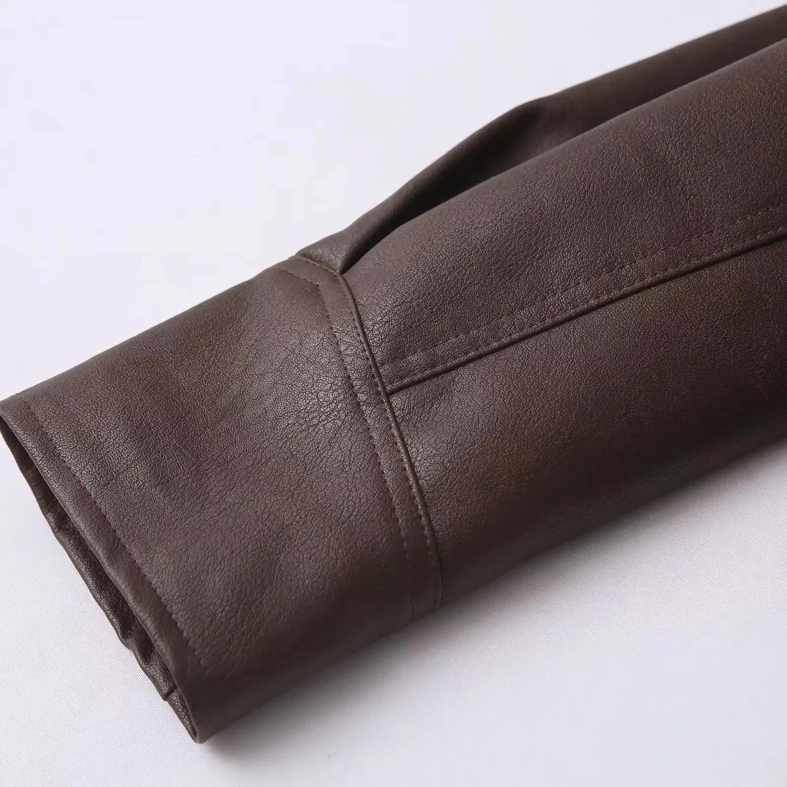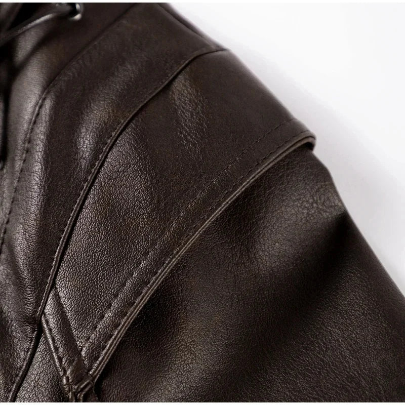 Crafted from high-quality polyester, this jacket features a notched lapel and shoulder pads for a structured look. Its versatility is enhanced with a hood, making it suitable for various weather conditions. Whether you're heading to a casual outing or a more formal event, this leather bomber jacket is your go-to for effortless chic.