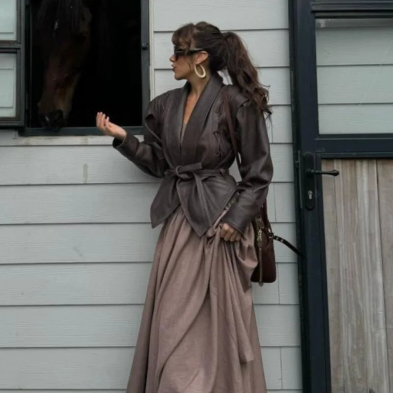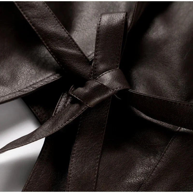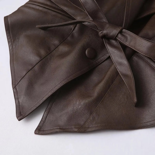 Elevate your wardrobe with our Chic Belted Leather Bomber Jacket, a perfect blend of style and practicality for the modern woman. This jacket combines the edgy appeal of classic motorcycle gear with contemporary fashion touches, making it a must-have for autumn and winter. Designed with a slim fit and a stylish lace-up detail, it adds an instant upgrade to any outfit, from casual jeans to evening wear.