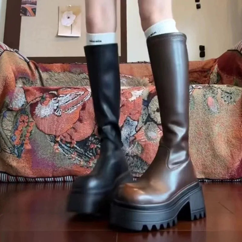Step into style with our Chic Black Platform Knee-High Fashion Boots, designed to elevate your wardrobe and your stature. These striking boots blend classic elegance with a modern twist, featuring a sleek black finish and a comfortable wedge heel. Ideal for fashion-forward women who don't compromise on style or comfort, these boots are perfect for any season, ensuring you stay chic whether you're at a party or on a casual day out.