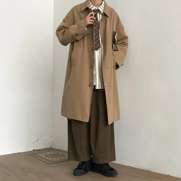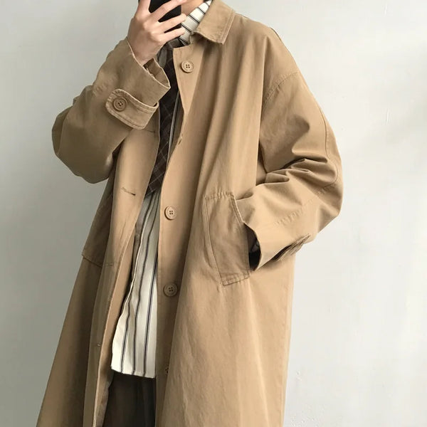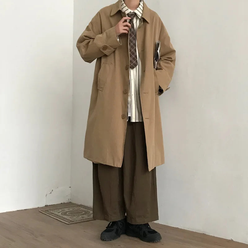 Step into timeless style with this Chic Japanese Vintage Trench Coat for Men, a perfect blend of classic aesthetics and modern functionality. Ideal for both autumn and winter travel, this trench coat features a sleek design with a single-breasted closure that adds a touch of elegance to your everyday wardrobe. Crafted from high-quality cotton and acetate, it offers both warmth and comfort without compromising on style. Whether you're heading to the office or exploring the city, this coat ensures you do so in style.