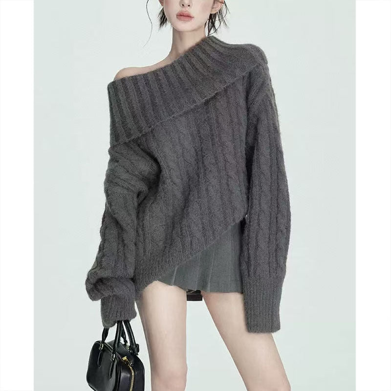 Chic Off-Shoulder Turtleneck Sweater in Soft Fabric