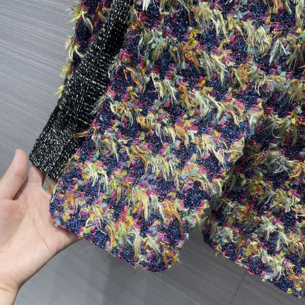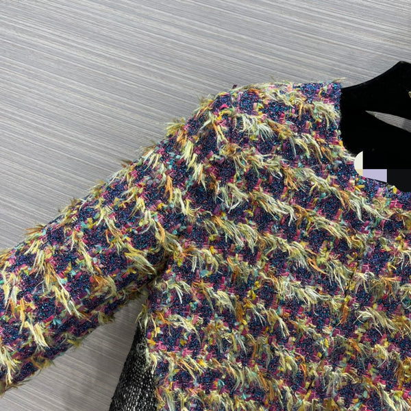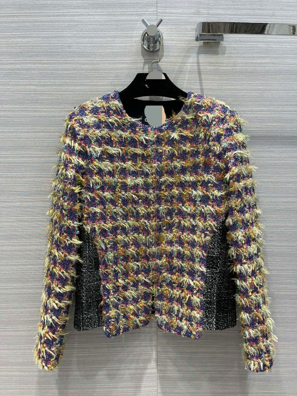 Chic Patchwork Woven Jacket with Fragrance Pattern