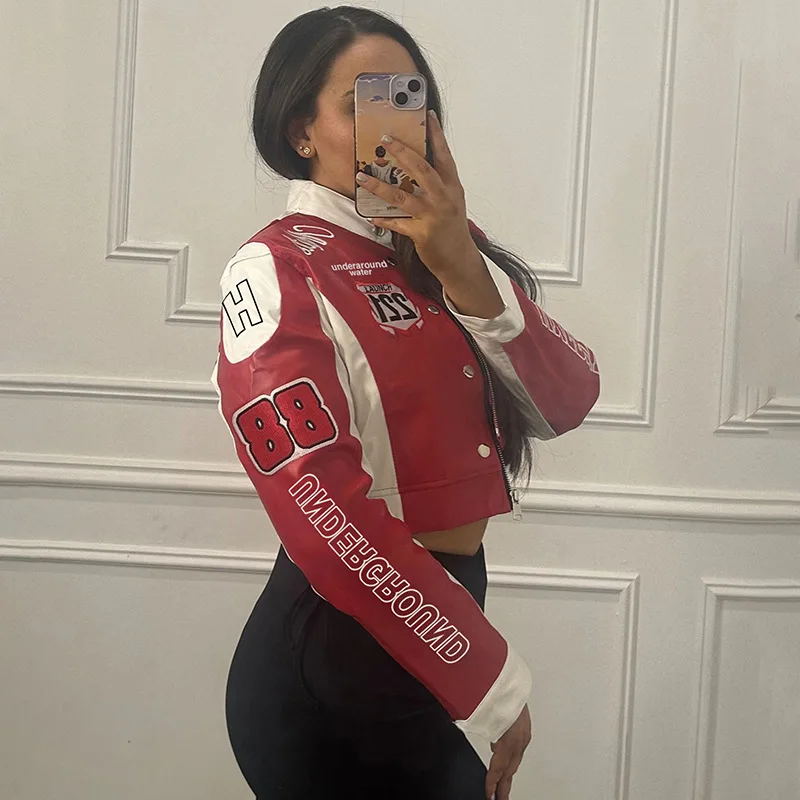 Embrace the Y2K revival with this chic PU leather motorcycle jacket that combines edgy design with comfortable wear. Perfect for spring and autumn, this jacket features a trendy letter print and a hipster vibe that elevates any casual outfit. Its lightweight material and stylish single-breasted closure ensure you stay fashion-forward without sacrificing comfort. Whether you're hitting the city streets or gearing up for a casual outing, this jacket adds a dash of daring to your wardrobe.