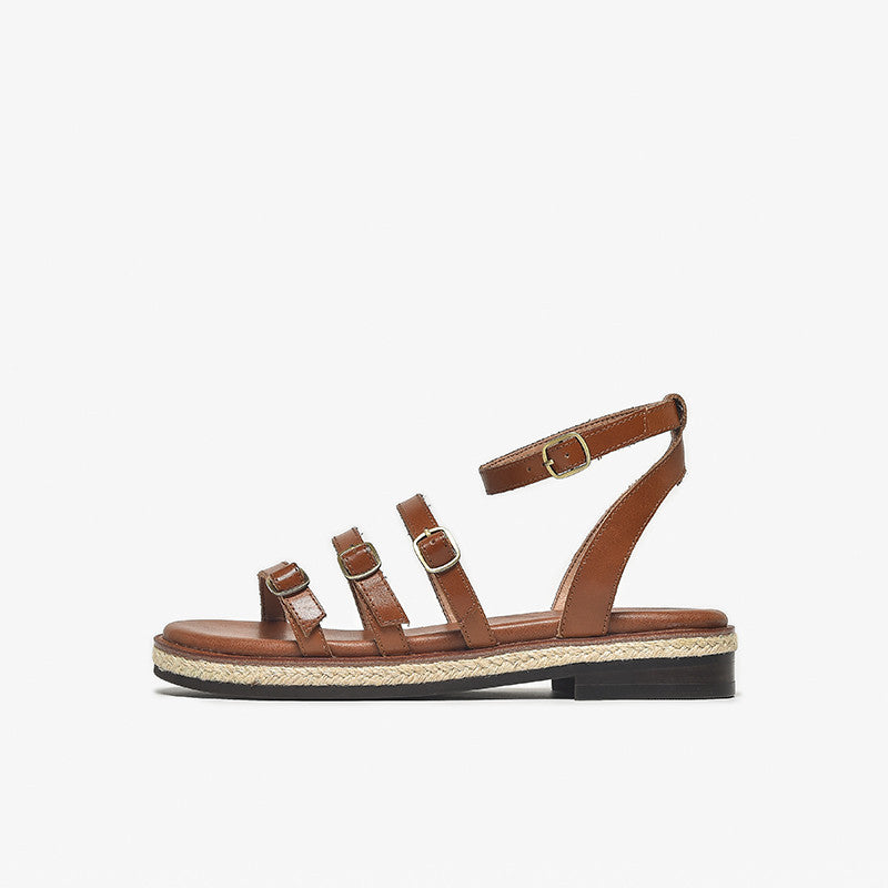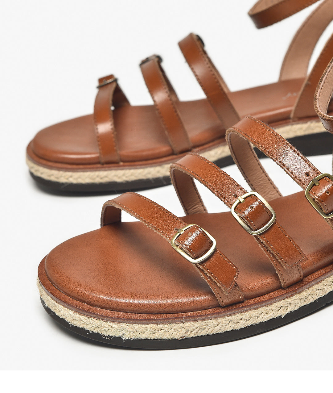 Women's Chic Retro Chunky Heel Sandals, Leather with Rubber Sole, Comfortable and Stylish Footwear, Modest Heel Height