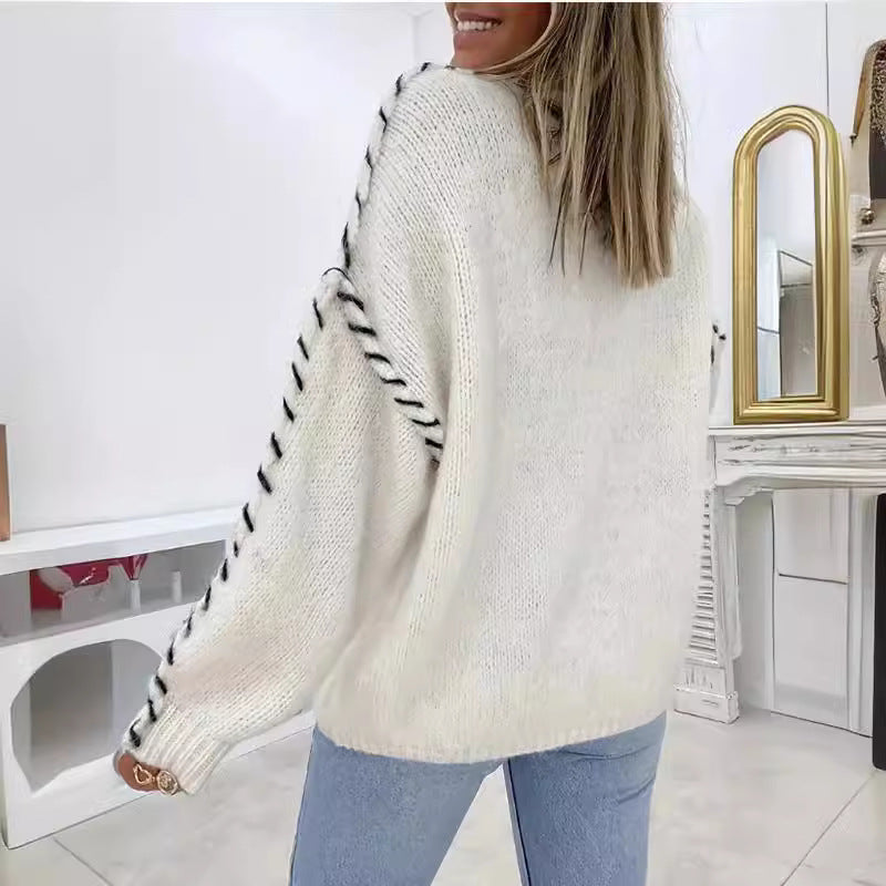Chic Solid Color Round Neck Sweater for Spring & Autumn