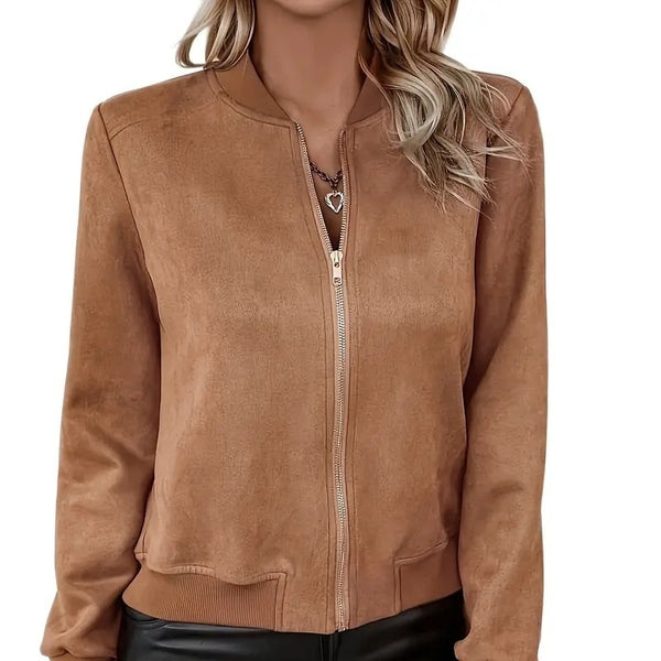 Chic Solid Color Zip-Up Women's Jacket, Autumn & Winter Fashion, Slim Fit, Spandex Material - Available in Various Colors.