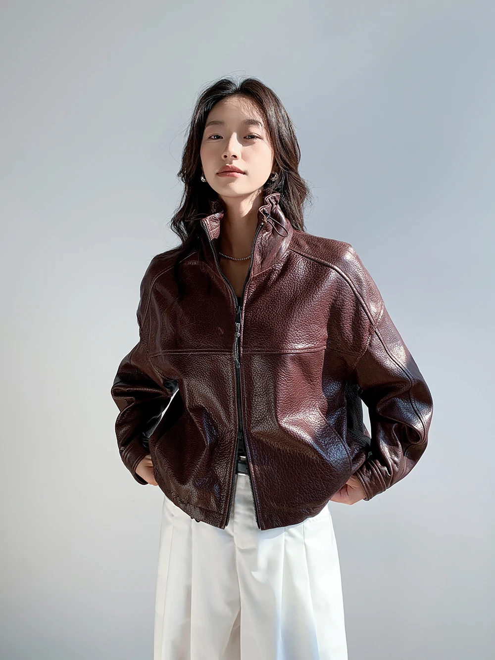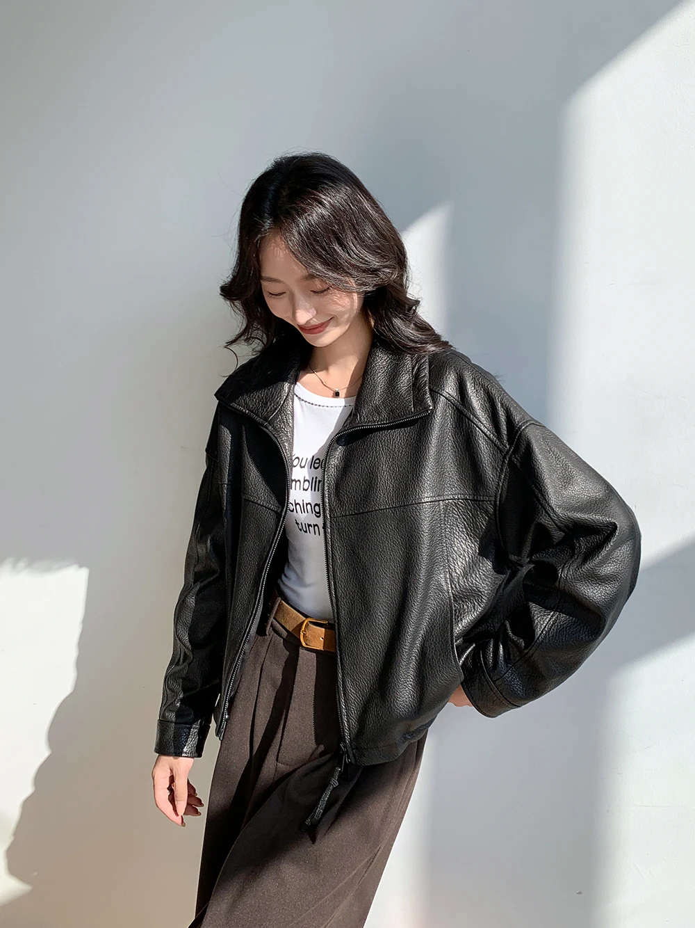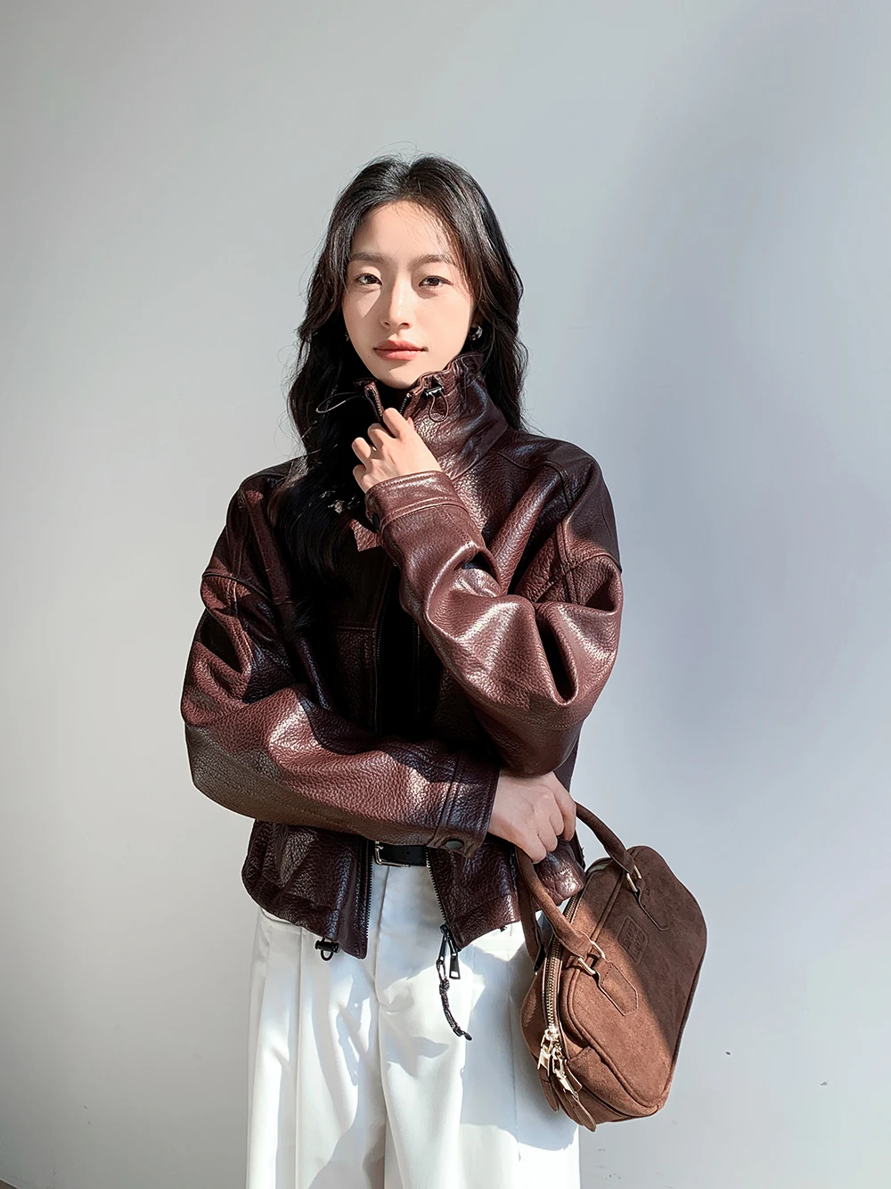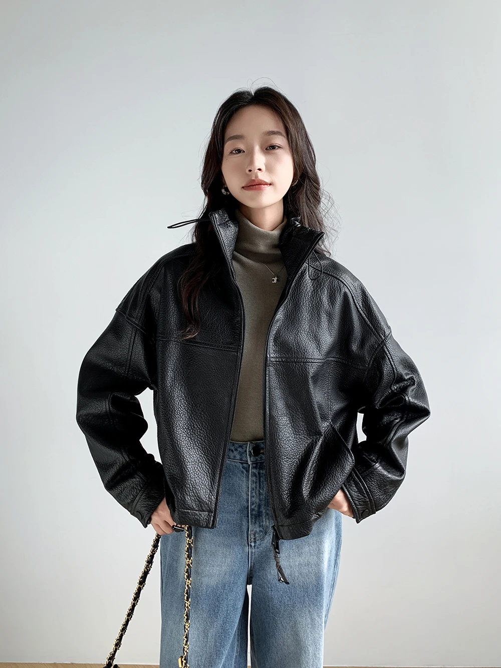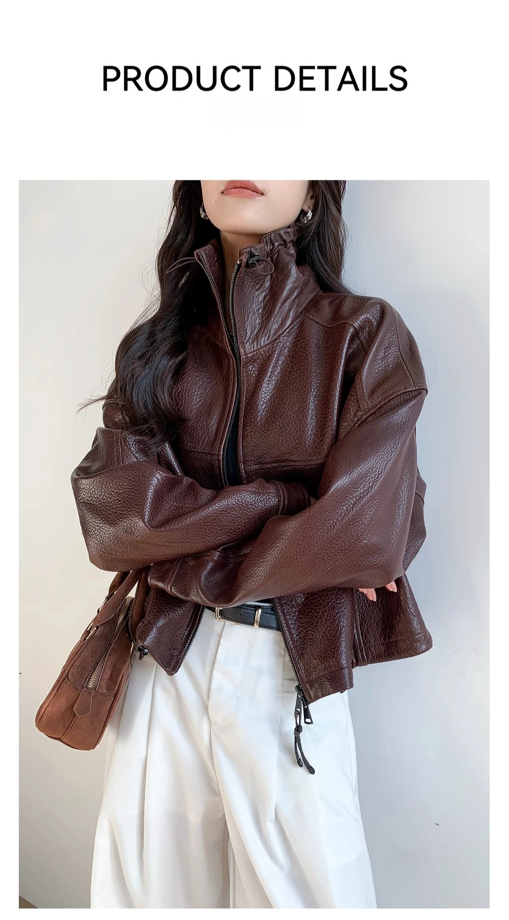 Crafted from the finest sheepskin, this jacket isnβt just a piece of clothingβitβs a testament to the art of classic refinement meeting modern edge. The tailored, cropped cut promises to enhance your silhouette, while the luxurious feel of real leather molds to your form, becoming more distinctively yours with each wear. Whether it's a spontaneous gallery opening or a rooftop gathering among friends, this jacket transforms each occasion, ensuring you stand out effortlessly.