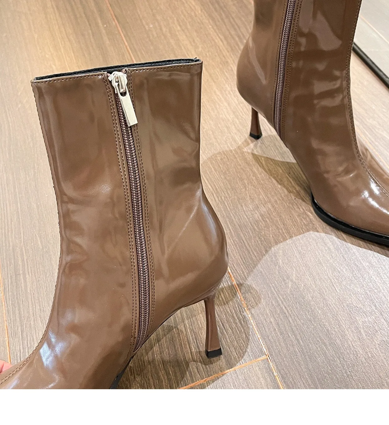 Chic women's ankle boots with zipper, high heel, pointed toe, perfect for autumn and winter fashion, made of PU leather.