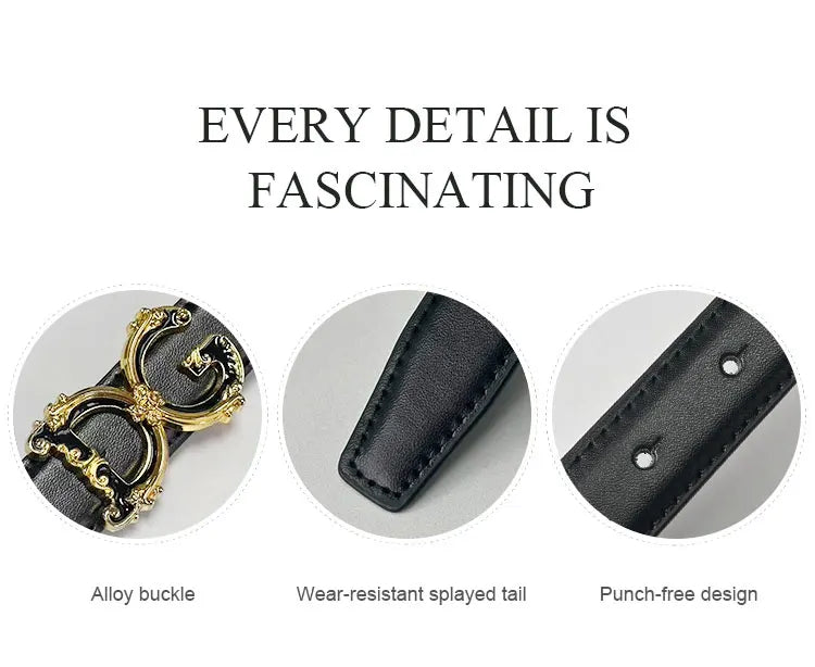 Ideal for adding a decorative element to your daily apparel, this belt combines functionality with an eye-catching aesthetic. Whether you're dressing up for a meeting or styling a casual day out, this belt is your go-to accessory for a chic finish.