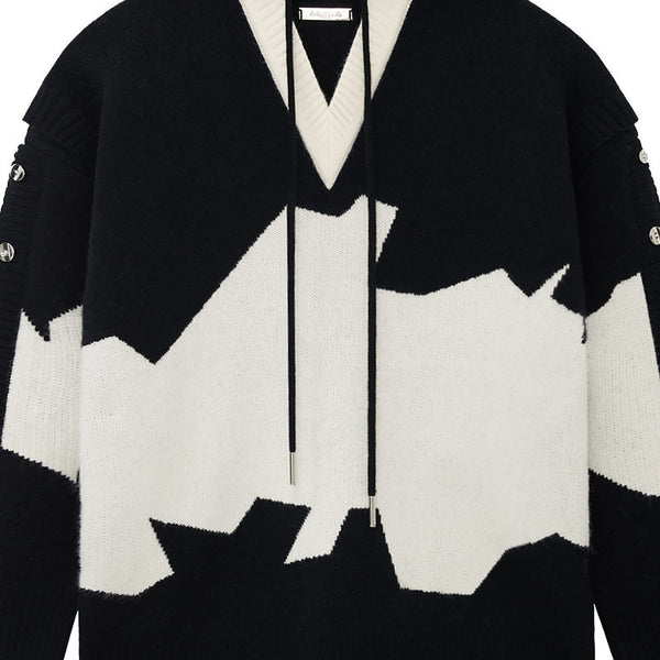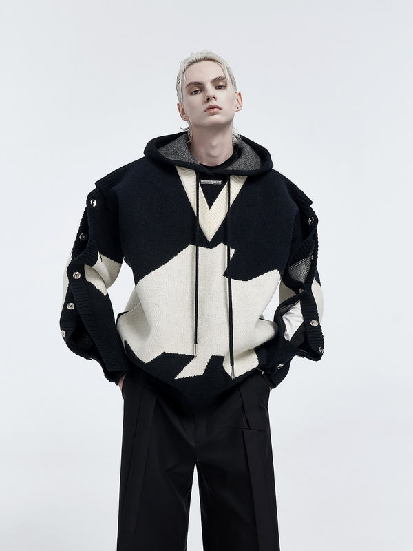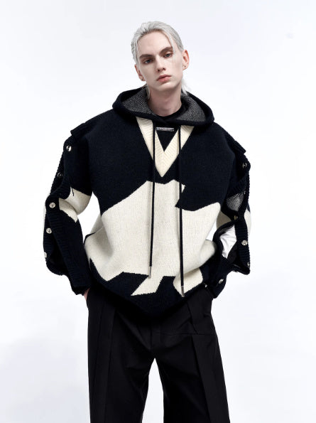 Classy B&W Faux Two-piece Embroidered Hoodie for Men