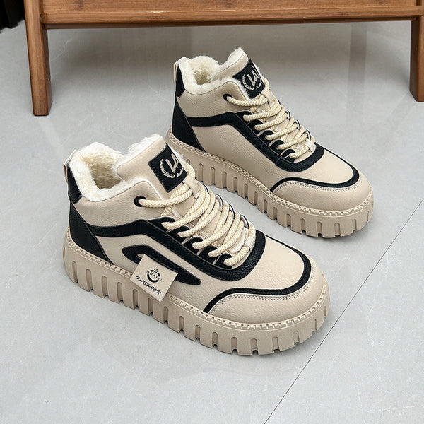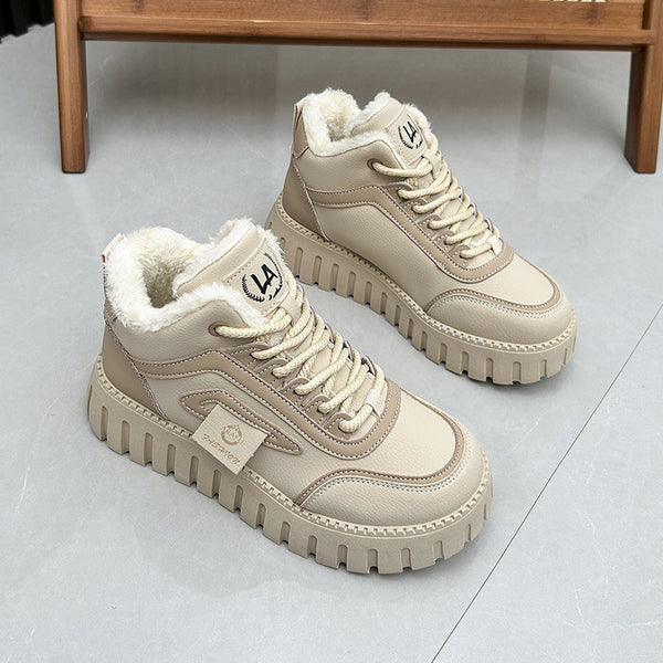 Women's High-Top Sneakers with Fleece Lining, Winter Fashion, Brushed Khaki