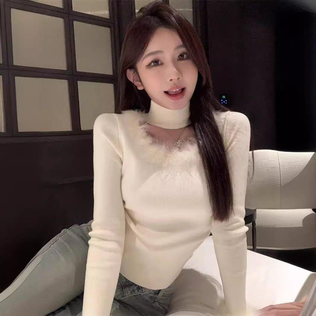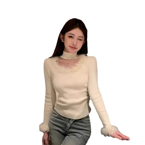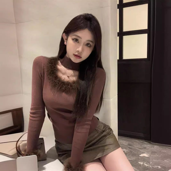 Cozy Women's Patchwork Halter Top in Apricot/Brown - Slim Fit Winter Sweater