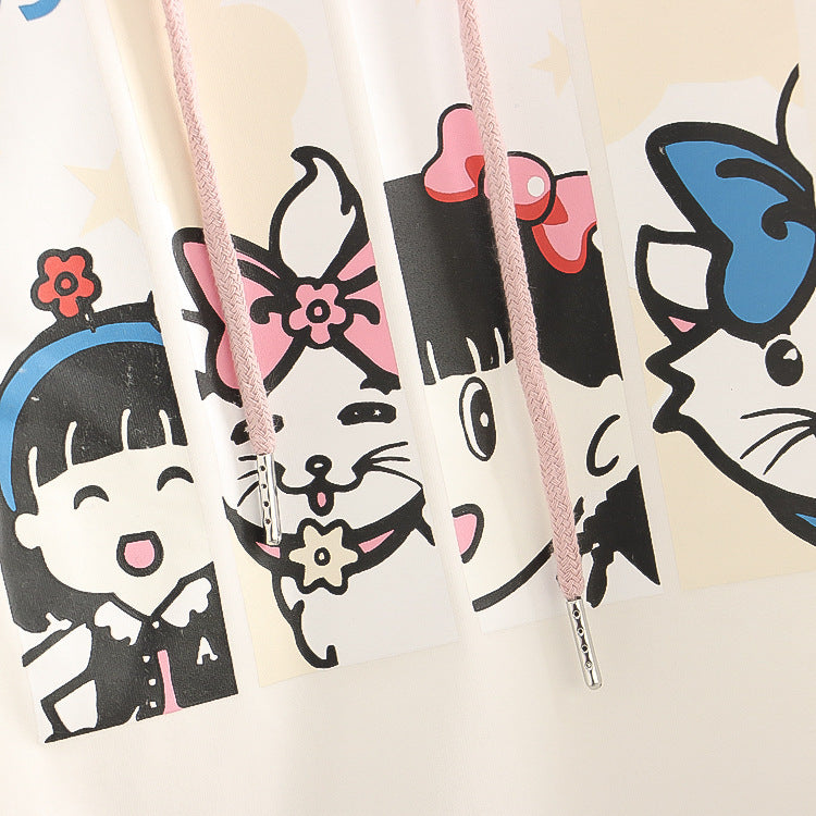 Embrace your fun-loving, sweet side with our unique Cute Ruffled Patchwork Hoodie with Cartoon Print. Perfect for those casual, laid-back days, this hoodie delivers both comfort and style.
