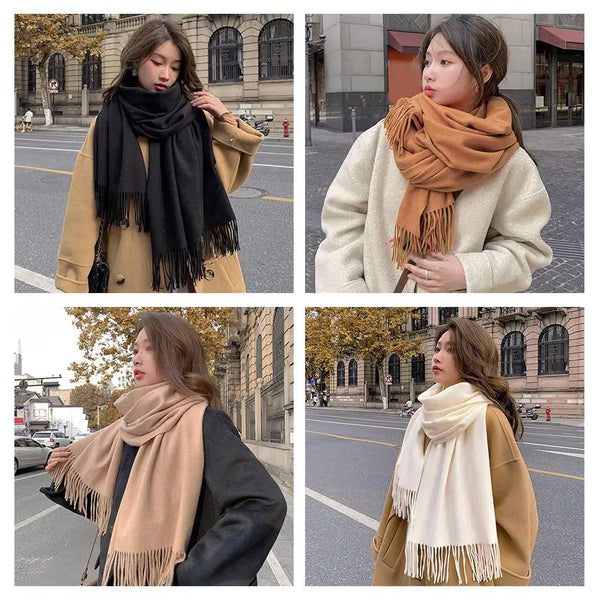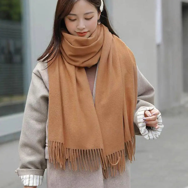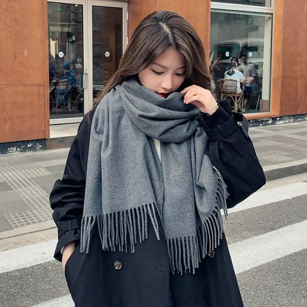 The scarf's generous dimensions and lightweight design make it an ideal choice for those chilly days. It features a fashionable tassel trim that enhances its overall aesthetics, making it more than just a functional pieceβit's a style statement.