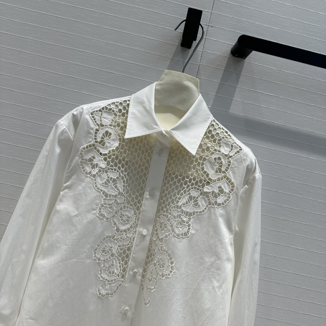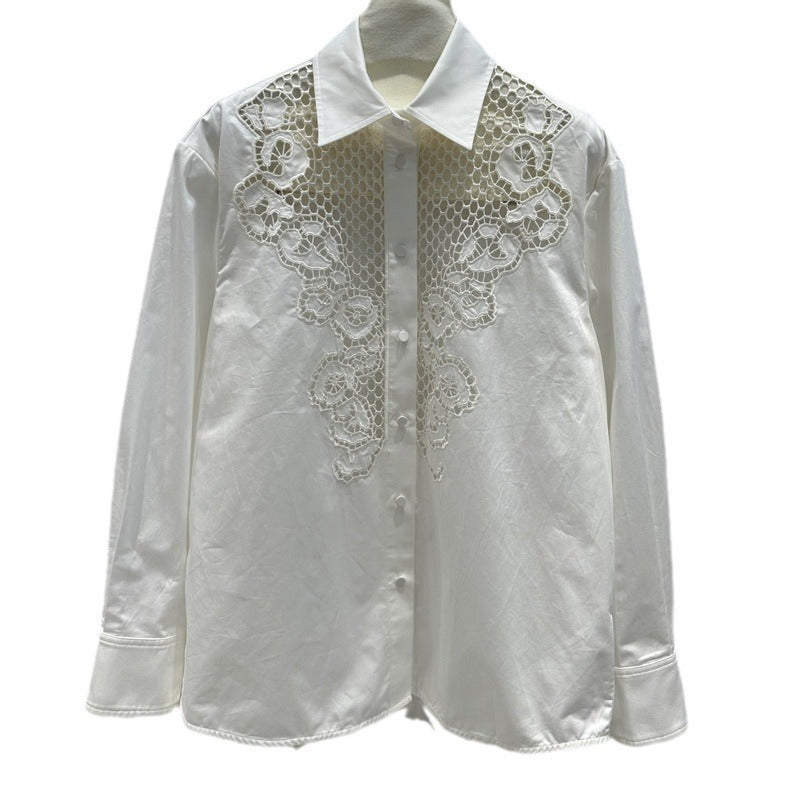 Elegant Hollow Mesh Long-Sleeve Women's Lapel Shirt