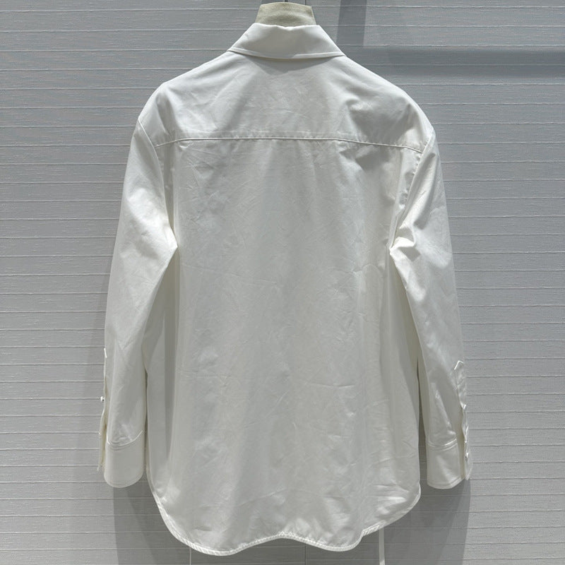 Discover our Elegant Hollow Mesh Long-Sleeve Women's Lapel Shirt, designed to lend a touch of sophistication to your daily ensemble. A flawless blend of style and comfort in a beautiful solid white color for an elegant, timeless look.