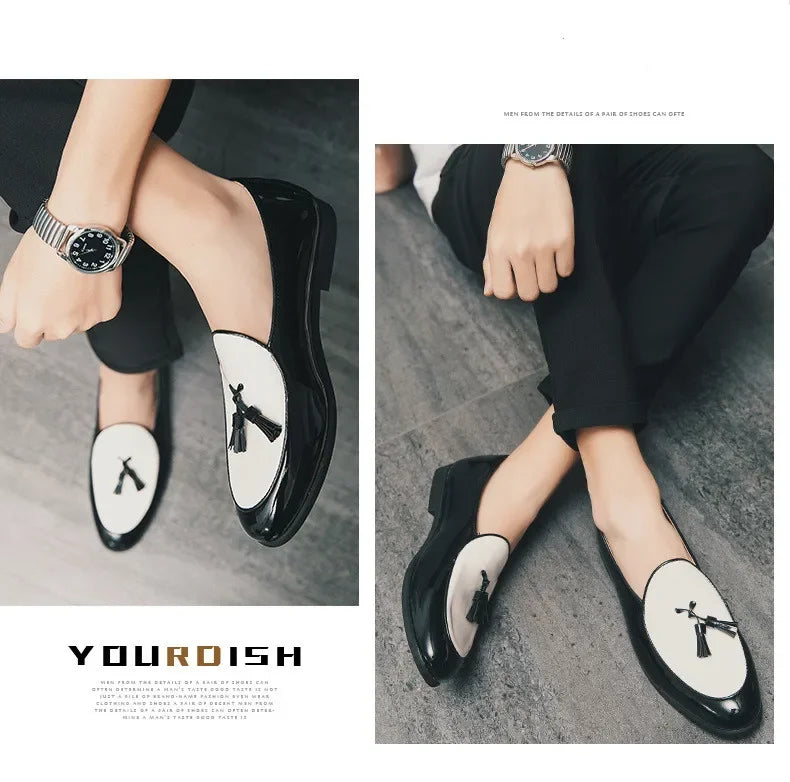 Crafted from the finest Italian leather, these loafers aren't merely a part of your outfit; they are a testament to the craftsmanship that elevates your entire presence. They ensure that your arrival is as impactful as your departure, with comfort that lasts through hours of mingling, toasts, and dances. Choose to not just step, but to glide through life's most significant moments with poise and assurance.